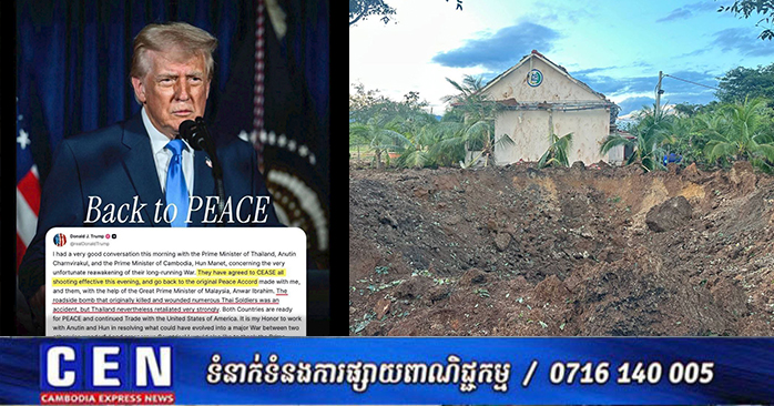 ភ្នំពេញ ៖ ឯកឧត្តម ហេង រតនា អគ្គនាយកស៊ីម៉ាក់ បានថ្លែងថា ក្នុងនាមប្រជាពលរដ្ឋខ្មែរមួយរូបខ្ញុំសូមសំដែងនូវអំណរគុណឯ.ឧប្រធានាធិបតីDonald J. Trump ដែលបានខិតខំលះបង់និងជំរុញឱ្យមានការគោរពដល់ស្មារតីសន្តិភាពដែលមានស្រាប់! ជាមួយនេះឯ.ឧប្រធានាធបតី ក៏បានបញ្ជាក់កាពិតខ្លីពីបញ្ហាគ្រោះថ្នាក់មីនរបស់ទាហានសៀមនានាកន្លងមកជា”ឧបទ្ទេវហេតុ”!! ប៉ុន្តែពួកមេដឹកនាំចោរឈ្លានពានសៀមឆ្លេីយតបវិញថា មិនអាចទទួលបានឡេីយ!! ហេីយអ្វីដែលពួកចោរឈ្លានពានបែរជាអាចទទួលបាន “ចំពោះការសម្លាប់ជនកម្ពុជាមិនរេីសមុខរួមមានទារក ក្មេងៗ ប្រជាជន និងអាចារ្យវត្តជាដេីម… ។ ល។ “
