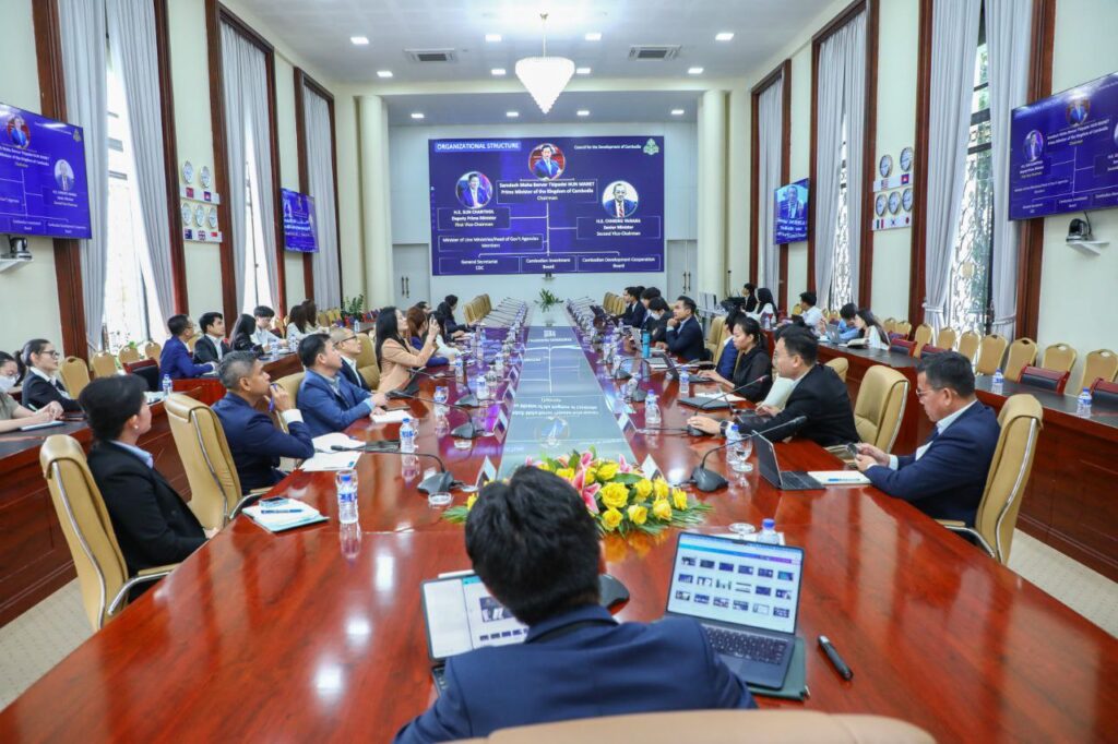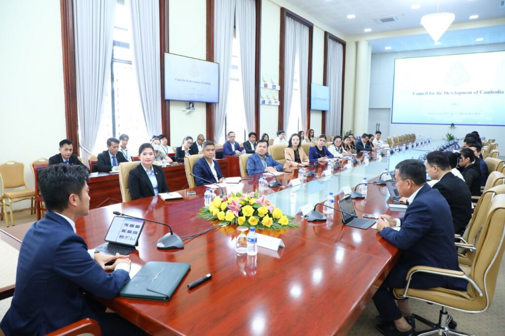 ភ្នំពេញ ៖ ឯកឧត្តម ហ៊ាង សុទ្ធាយុត្តិ អគ្គលេខាធិការរង នៃអគ្គលេខាធិការដ្ឋានក្រុមប្រឹក្សាអភិវឌ្ឍន៍កម្ពុជា(ក.អ.ក.) ទទួលបន្ទុកការងារបច្ចេកវិទ្យាឌីជីថល និងផ្សព្វផ្សាយ បានដឹកនាំកិច្ចប្រជុំពិភាក្សាជាមួយ អ្នកតំណាងធនាគារធំៗចំនួន ៦ស្ថាប័ន ពាក់ព័ន្ធនឹងការសហការតភ្ជាប់ប្រព័ន្ធទូទាត់ប្រាក់រួម (ប្រព័ន្ធ cdcOSP) របស់ ក.អ.ក. សំដៅជំរុញការធ្វើឌីជីលូបនីយកម្មក្នុងការផ្តល់សេវាសាធារណៈឱ្យបានកាន់តែប្រសើរ និងចំណាយពេលវេលាកាន់តែតិចជូនដល់អ្នកស្នើសុំសេវាសាធារណៈរបស់ ក.អ.ក. ព្រមទាំងពង្រឹងកិច្ចសហការរវាងផ្នែករដ្ឋ និងវិស័យឯកជន ក្នងការធានានូវភាពធន់ និងលទ្ធភាពប្រកួតប្រជែងរបស់សេដ្ឋកិច្ចកម្ពុជាក្នុងរយៈពេលវែង។កិច្ចពិភាក្សានេះបានធ្វើឡើងនាក្រុមប្រឹក្សាអភិវឌ្ឍន៍កម្ពុជា នារសៀលថ្ងៃចន្ទ ទី១៥ ខែធ្នូ ឆ្នាំ២០២៥ ។