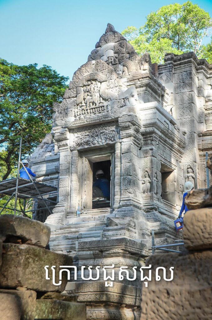 សូមបញ្ជាក់ថា មុនការជួសជុល ប្រាសាទជមមានស្ថានភាពទ្រុឌទ្រោមខ្លាំង ដោយសារអាយុកាលនៃសំណង់ កត្តាធម្មជាតិ និងមានឫសឈើចាក់បំបែករចនាសម្ព័ន្ធរបស់ប្រាសាទ រហូតដល់គ្រឹះខាងក្រោម ការនេះធ្វើឱ្យដីគ្រឹះចុះខ្សោយ និងស្រុតចុះ។ ដើម្បីជួសជុលប្រាសាទនេះ ក្រុមការងារបានរើថ្មប្រាសាទនេះទាំងអស់ រួចរៀបផ្គុំឡើងវិញ និងបានស្វែងរកថ្មដែលបានបាត់ មកដាក់នៅទីតាំងដើមវិញ ដូចជាផ្តែរ សសរពេជ្រ និងស៊ុមទ្វារផ្នែកខាងក្រៅជាដើម៕ រក្សាសិទ្ធដោយ៖សុទ្ធលី