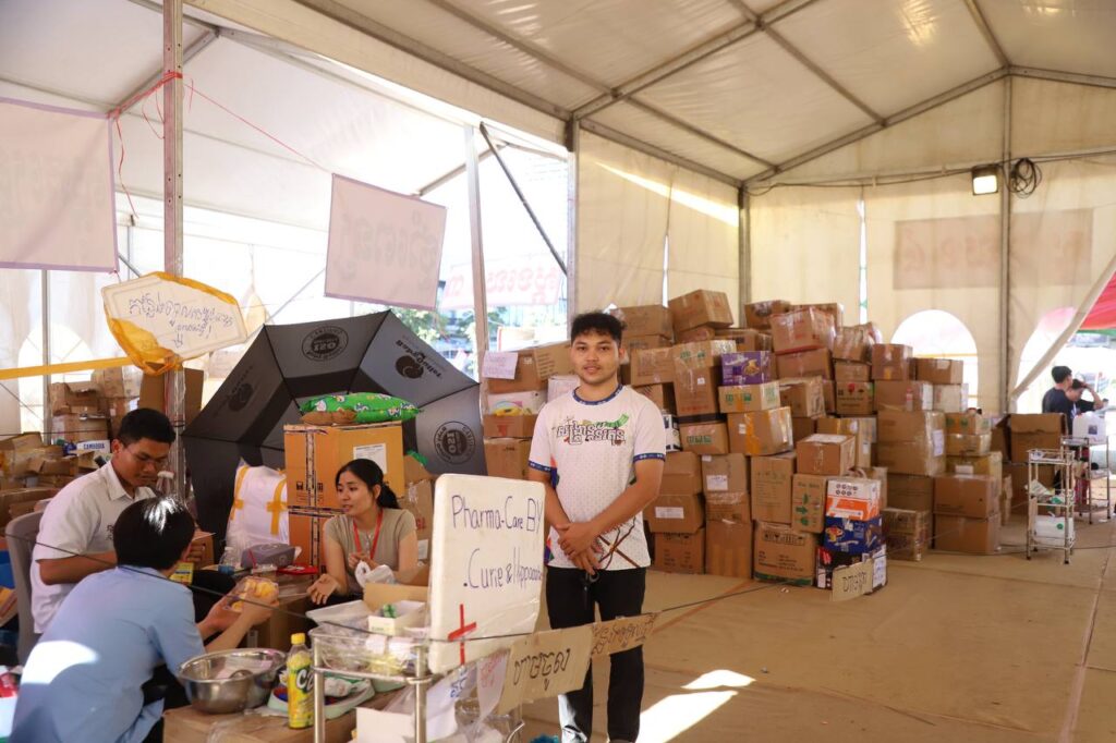 ទីតាំទទួលអំណោយសប្បុរសជនEat More នៅតំបន់អភិវឌ្ឍន៌បឹងកក់ មានរោងដាក់ជាស្តង់ប្រកកៅស៊ូជាច្រើនរៀបទៅតាមផ្នែកនិមួយៗចាំទទួលអំណោយពីសប្បុរសជនដែលបាននាំយកអំណោយជាស្បៀងអាហារ, គ្រឿងឧបភោគ.បរិភោគ,បន្លែ ផ្លែឈើ អង្ករ មី ទឹកសុទ្ធ ថ្នាំពេទ្យនិងសំភារៈប្រើ ប្រាស់ជាជាច្រើនមុខទៀត។ក្រុមយុវជនស្មគ្រ័ចិត្តជាច្រើនក្រុមបានចូលរួមវេចខ្ចប់សំភារៈដើម្បីរៀបចំបញ្ជូនទៅសមរភូមិជូនវិរៈកងទ័ពជួរមុខ និងបងប្អូនជនភាសសឹកមកកាន់ទីតាំងមានសុវត្ថិភាព។