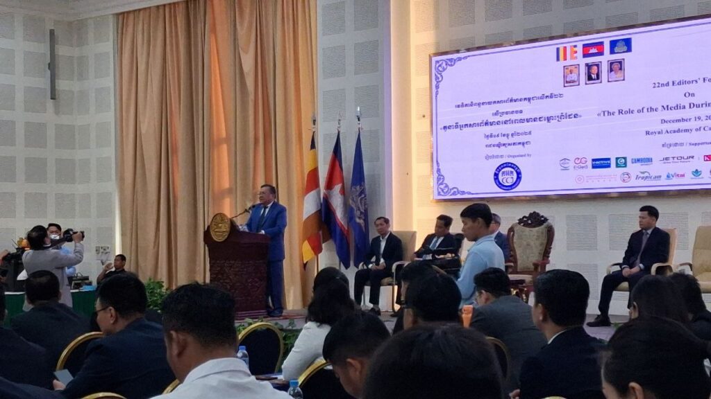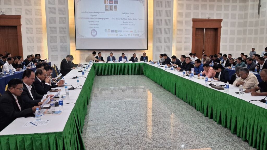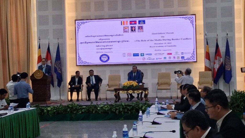 វេទិកានិពន្ធនាយកសារព័ត៌មានកម្ពុជា លើកទី២២ ស្ដីពី “តួនាទីអ្នកសារព័ត៌មាននៅពេលមានជម្លោះព្រំដែន» ថ្ងៃទី១៩ ខែធ្នូ ឆ្នាំ២០២៥។