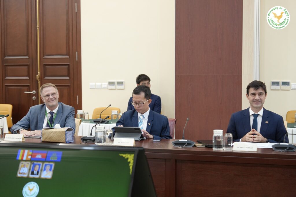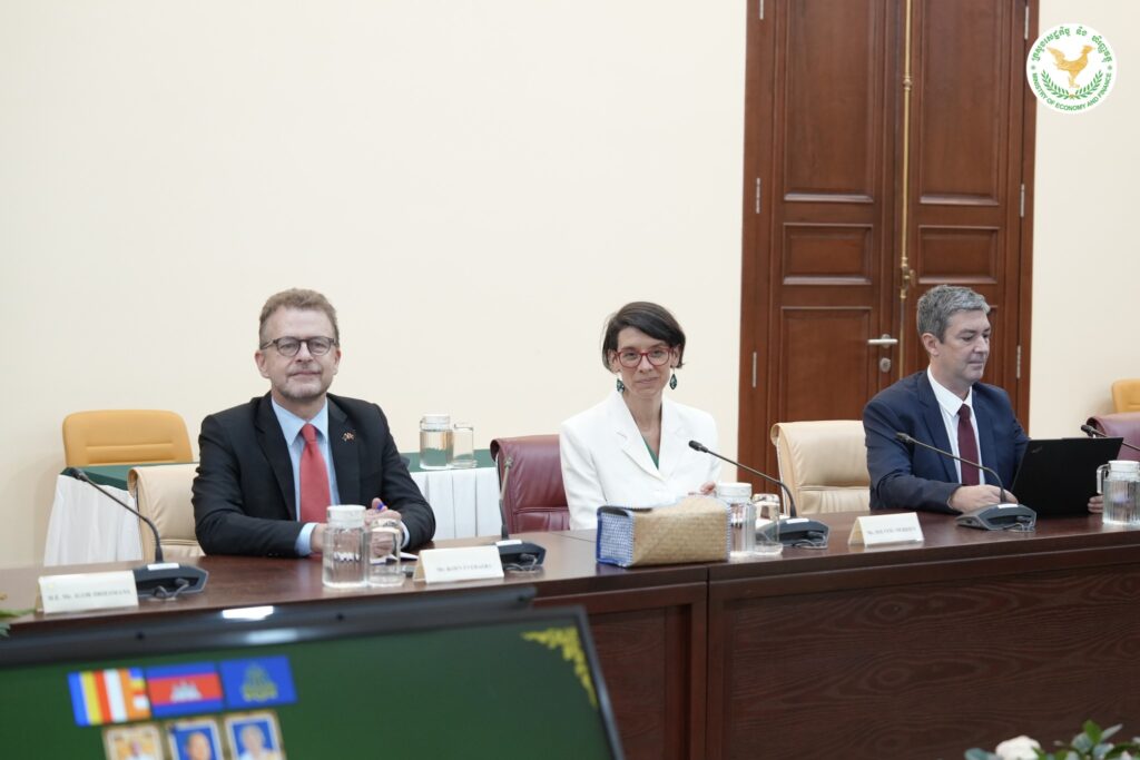 នៅថ្ងៃទី ១៨ ខែ ធ្នូ ឆ្នាំ ២០២៥នៅទីស្ដីការក្រសួងសេដ្ឋកិច្ច និងហិរញ្ញវត្ថុ, ឯកឧត្តមអគ្គបណ្ឌិតសភាចារ្យ អូន ព័ន្ធ មុនីរ័ត្ន ឧបនាយករដ្ឋមន្ត្រី រដ្ឋមន្ត្រីក្រសួងសេដ្ឋកិច្ច និងហិរញ្ញវត្ថុ និងឯកឧត្តម ម៉ីហ្គូ ទ្រីសមាន់ ឯកអគ្គរដ្ឋទូតសហភាពអឺរ៉ុបប្រចាំកម្ពុជា បានជួបសន្ទនាទ្វេភាគី ដើម្បីបញ្ជាក់សារជាថ្មីនូវភាពជាដ គូសហប្រតិបត្តិការដ៏រឹងមាំ ក៏ដូចជា ដើម្បីពិនិត្យមើលនូវវឌ្ឍនភាពក្នុងវិស័យសំខាន់ៗនៃកិច្ចសហប្រតិបត្តិការកន្លង ។
