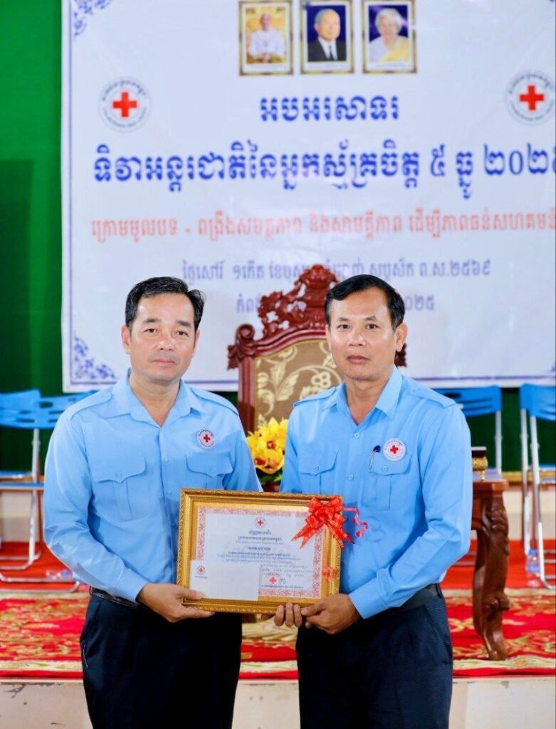 ខេត្តកំពង់ចាម: ឯកឧត្តម អ៊ុន ចាន់ដា អភិបាលខេត្តនិងជាប្រធានគណៈកម្មាធិការសាខា កាកបាទក្រហមកម្ពុជាខេត្ត បានអញ្ជើញក្នុងពិធីសំណេះសំណាល អបអរសាទរ ទិវាអន្ដរជាតិ នៃអ្នកស្ម័គ្រចិត្ត ៥ ធ្នូ ឆ្នាំ២០២៣ ក្រោមមូលបទ « ស្ម័គ្រចិត្ត ដើម្បីក្តីសង្ឃឹមសហគមន៍» ដែលបានប្រព្រឹត្តទៅ នា សាលប្រជុំទីស្នាក់ការអនុសាខាស្រុកស្ទឹងត្រង ដោយធ្វើឡើងនៅថ្ងៃទី២០ធ្នូ ឆ្នាំ២០២៥ ។ ជាមួយនោះមានការចូលរួមពីរនាក់ស្ម័គ្រចិត្តមកពីតាមបណ្ដាឃុំនានា ដើម្បីទទួលបានចំណេះបន្ថែមទៅអនុវត្តហើយបានទទួលជោគជ័យ។