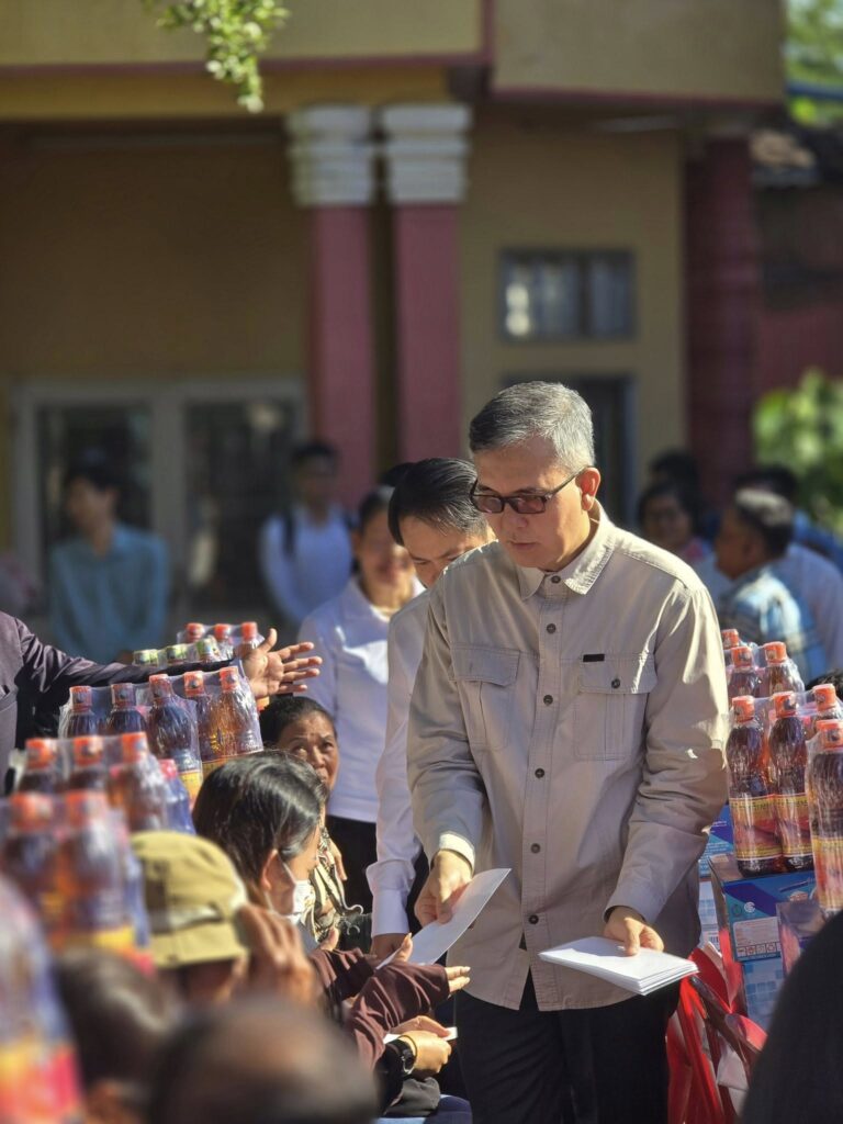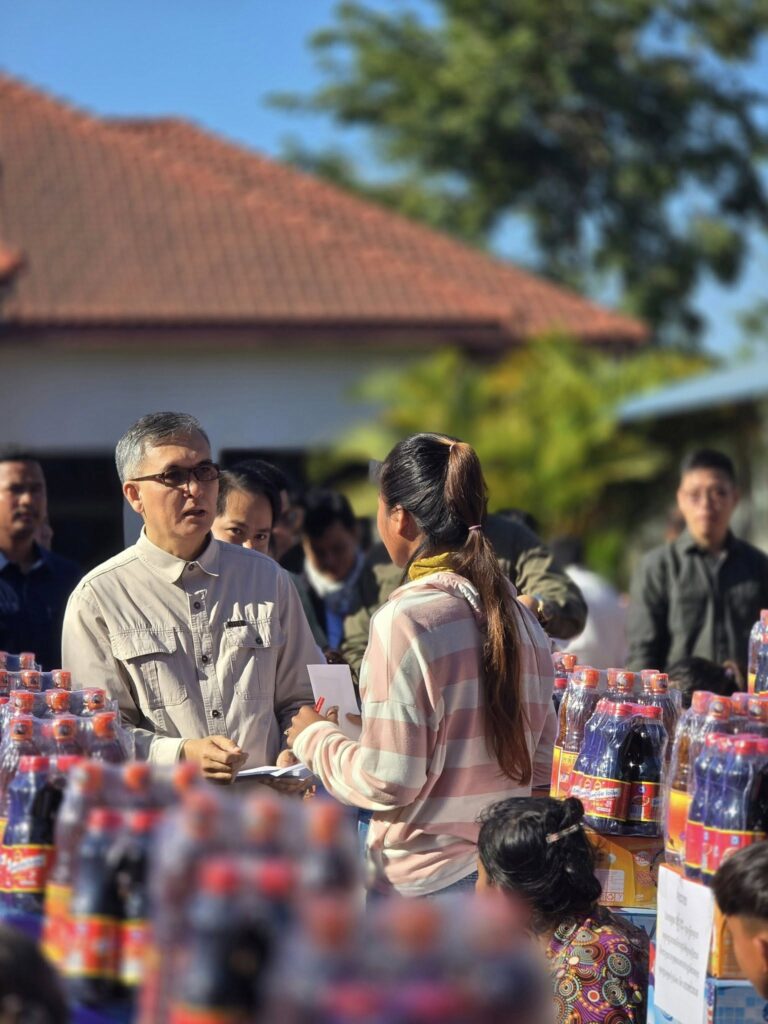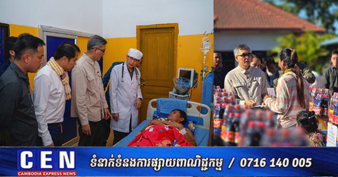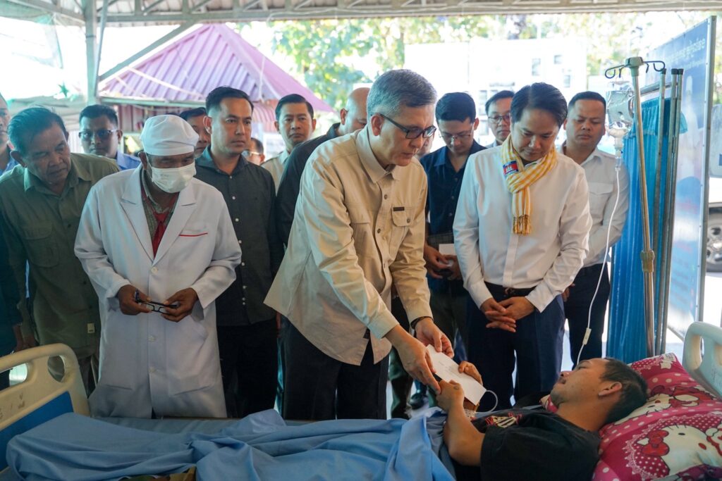 ព្រៃវែង ៖ នាព្រឹកថ្ងៃអាទិត្យ ២កើត ខែបុស្ស ឆ្នាំម្សាញ់ សប្តស័ក ព.ស.២៥៦៩ ត្រូវថ្ងៃទី២១ ខែធ្នូ ឆ្នាំ២០២៥ ឯកឧត្តម ឡាំ ជា រដ្ឋមន្រ្ដីទទួលបន្ទុករដ្ឋលេខាធិការដ្ឋានកិច្ចការព្រំដែន និងជាប្រធានក្រុមការងាររាជរដ្ឋាភិបាលចុះមូលដ្ឋានក្រុងព្រៃវែងបានអញ្ជើញចុះជួបសំណេះសំណាល សួរសុខទុក្ខ ចែកសម្ភារៈ ព្រមទាំងថវិកា ដែលគិតជាទឹកប្រាក់សរុបចំនួន ៤៣,៦៥០,០០០ រៀល ចែកជូនបងប្អូនជនភៀសសឹកកម្ពុជា ដែលបានវិលត្រលប់ចូលមូលដ្ឋានវិញ សរុបចំនួន២៣៥នាក់ ស្ថិតក្នុងភូមិសាស្រ្តក្រុងព្រៃវែង ខេត្តព្រៃវែង។ ជាមួយគ្នានេះ ឯកឧត្តមរដ្ឋមន្រ្តី បានដឹកនាំក្រុមការងារចុះសួរសុខទុក្ខវីរៈយុទ្ធជនជួរមុខដែលបានរងរបួសនៅក្នុងការប្រយុទ្ធតតាំងជាមួយខ្មាំងសត្រូវឈ្លានពានថៃ ដែលកំពុងសម្រាកព្យាបាលនៅក្នុងមន្ទីរពេទ្យ។