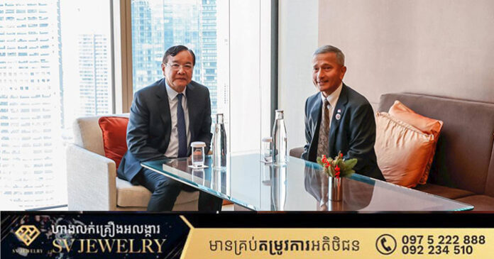 ទីក្រុងគូឡាឡាំពួ ប្រទេសម៉ាឡេស៊ី ៖ នៅព្រឹកថ្ងៃទី២២ ខែធ្នូ ឆ្នាំ២០២៥ ឯកឧត្តមឧបនាយករដ្ឋមន្ត្រី ប្រាក់ សុខុន រដ្ឋមន្ត្រីការបរទេស និងសហប្រតិបត្តិការអន្តរជាតិ បានអញ្ជើញជួបទ្វេភាគីជាមួយ ឯកឧត្តម Vivian Balakrishnan រដ្ឋមន្ត្រីការបរទេសសឹង្ហបុរី អំឡុងពេលនៃការចូលរួមកិច្ចប្រជុំពិសេសរដ្ឋមន្ត្រីការបរទេសអាស៊ាន ស្តីពីស្ថានភាពបច្ចុប្បន្នរវាងកម្ពុជា និងថៃ នៅទីក្រុងគូឡាឡាំពួ ប្រទេសម៉ាឡេស៊ី។