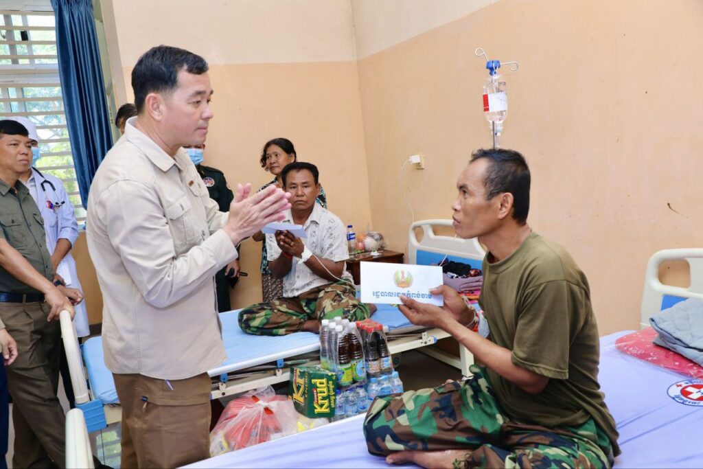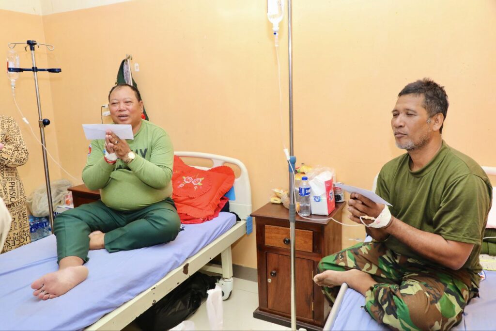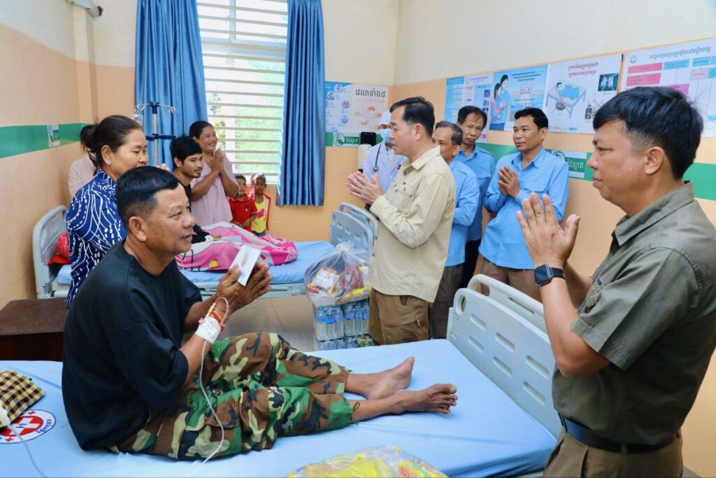 ខេត្តកំពង់ចាម៖ កងកម្លាំងវីរៈយុទ្ធជនជួរមុខចំនួន៦នាក់ ដែលមានជំងឺចូលមកសម្រាកជាបន្តបន្ទាប់នៅមន្ទីរពេទ្យបង្អែកស្រុកបាធាយ ត្រូវបានក្រុមគ្រូពេទ្យយកចិត្តទុកដាក់ព្យាបាលធ្វើឲ្យស្ថានភាពជំងឺបានធូរស្រាលច្រើនក្នុងរយៈពេល២ទៅ៣ថ្ងៃខាងមុខទៀតពួកគាត់និងចាកចេញពីមន្ទីរពេទ្យនេះបើតាមការឲ្យដឹងពីលោកវេជ្ជបណ្ឌិតទូចហួត ប្រធានមន្ទីរពេទ្យបង្អែកស្រុកបាធាយ មានប្រសាឲ្យដឹងអ្នកព្រឹកថ្ងៃទី ២២ធ្នូ ឆ្នាំ២០២៥។ ជាមួយនោះពួកគាត់និងអញ្ជើញត្រឡប់ទៅអង្គភាពជួរមុខព្រំដែនកម្ពុជា-ថៃដើម្បីការពារបូរណភាពទឹកដីជាតិយើង។
