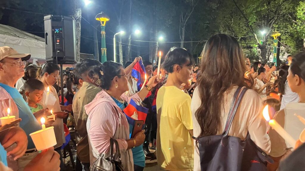 ភ្នំពេញ ៖ សម្តេចបវរធិបតី ហ៊ុន ម៉ាណែត នាយករដ្ឋមន្រ្តីនៃព្រះរាជាណាចក្រកម្ពុជា បានថ្លែងថា ប្រជាពលរដ្ឋកម្ពុជា ក៏ដូចជាភ្ញៀវបរទេស កំពុងធ្វើការ និងស្នាក់នៅក្នុងខេត្តសៀមរាប បានប្រមូលផ្តុំគ្នាអុជភ្លើងទៀន ដើម្បីសម្តែងអារម្មណ៍សោកសៅកើតឡើងពីសោកនាដកម្មនៃសង្គ្រាម និងទាមទារនូវសុខសន្តិភាពពេញលេញជូនប្រជាជនកម្ពុជា។ អ្វីដែលពួកគាត់បាននឹងកំពុងធ្វេី គឺចង់បង្ហាញទៅកាន់ពិភពលោកថា ពួកគាត់ចង់ឱ្យសង្គ្រាមឆាប់ចប់ ហេីយនាំមកនូវសន្តិភាពមកវិញ៕ រក្សាសិទ្ធដោយ៖សុទ្ធលី