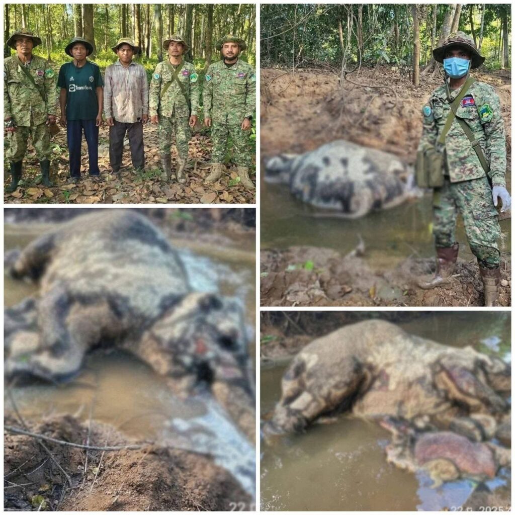 នៅថ្ងៃទី២៣ ខែធ្នូ ឆ្នាំ២០២៥ មន្ត្រីឧទ្យានុរក្សនិងសហគមន៍មូលដ្ឋាន បានរាយការណ៍ថាបានប្រទេះឃើញសត្វដំរីញី និងកូនដំរីស្លាប់ នៅចំណុចទីតាំងខាងលើ។ តាមការពិនិត្យបឋម សត្វដំរីញី១ក្បាល មានទំងន់ប្រមាណ៥០០គីឡូក្រាម និងកូនទើបកើត មានទំងន់ប្រមាន៨០គីឡូក្រាម បានស្លាប់ក្នុងទឹកអូរ ដោយដំរីញីមានស្នាមមុត បណ្តាលមកពីគ្រាប់ ឬអំបែងគ្រាប់ផ្ទុះរបស់ថៃ និងបានរលូតកូន ស្លាប់ទាំងម្តាយទាំងកូនដំរីផងដែរ។ មន្រ្តីជំនាញបរិស្ថាន បន្តធ្វើការសិក្សាស្រាវជ្រាវនិងចាត់វិធានការបន្តទៀត ចំពោះសពដំរី។