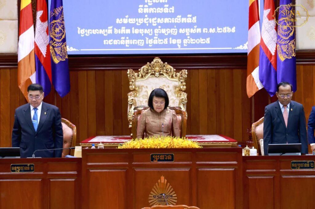 ភ្នំពេញ ៖ សម្តេចមហារដ្ឋសភាធិការធិបតី ឃួន សុដារី ប្រធានរដ្ឋសភានៃព្រះរាជាណាចក្រកម្ពុជា បានអញ្ជើញដឹកនាំកិច្ចប្រជុំរដ្ឋសភាលើកទី៥ នីតិកាលទី៧ នៅព្រឹកថ្ងៃព្រហស្បតិ៍ ទី២៥ ខែធ្នូ ឆ្នាំ២០២៥នេះ ដោយមានរបៀបវារៈចំនួន ៤ រួមមាន៖