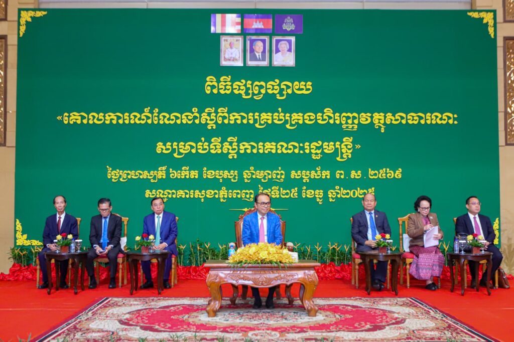 (ភ្នំពេញ)៖ ព្រឹកថ្ងៃទី២៥ ខែធ្នូ ឆ្នាំ២០២៥ ឯកឧត្តម វង្សី វិស្សុត ឧបនាយករដ្ឋមន្ត្រីប្រចាំការ រដ្ឋមន្រ្តីទទួលបន្ទុកទីស្ដីការគណៈរដ្ឋមន្រ្តីបានអញ្ជើញជាអធិបតីក្នុងពិធីផ្សព្វផ្សាយនិងដាក់ឱ្យអនុវត្ត «គោលការណ៍ណែនាំស្តីពីការគ្រប់គ្រងហិរញ្ញវត្ថុសាធារណៈសម្រាប់ទីស្តីការគណៈរដ្ឋមន្រ្តី» (FMM for OCM) ដោយមានការអញ្ជើញចូលរួមពីឯកឧត្តម លោកជំទាវ ជាថ្នាក់ដឹកនាំទីស្តីការគណៈរដ្ឋមន្រ្តី ក្រុមប្រឹក្សា អាជ្ញាធរ គណៈកម្មាធិការ អង្គភាពចំណុះទីស្ដីការគណៈរដ្ឋមន្រ្តី តំណាងក្រសួងសេដ្ឋកិច្ចនិងហិរញ្ញវត្ថុ ព្រមទាំងមន្រ្តីទទួលបន្ទុកកិច្ចការហិរញ្ញវត្ថុជាច្រើនរូប។