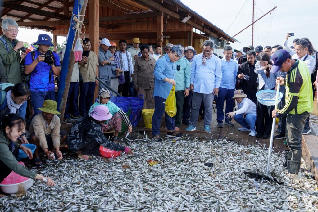 ក្នុងឱកាសនោះ ឯកឧត្តមរដ្ឋមន្រ្តី និងគណៈប្រតិភូអាជ្ញាធរទន្លេសាប រួមជាមួយឯកឧត្តម គួច ចំរើន អភិបាលនៃគណៈអភិបាលខេត្តកណ្តាល អង្គការស្បៀងអាហារ និងកសិកម្ម (FAO) តំណាងមន្ត្រីជលផល និងក្រុមការងារក្រសួងកសិកម្ម ព្រមទាំងអាជ្ញាធរមូលដ្ឋាន បានអញ្ជើញចុះស្វែងយល់ជាក់ស្តែងការធ្វើអាជីវកម្មឡូត៍នេសាទ គន្លងដាយជួរលេខ១៥ និងលេខ១៣ ក្នុងភូមិសាស្ត្រខេត្តកណ្តាល និងសកម្មភាពបងប្អូនប្រជាពលរដ្ឋមកធ្វើការកែច្នៃ ប្រហុក ផ្អក និងត្រីឆ្អើរ នៅតំបន់ឡូត៍ដាយជួរលេខ១៣។