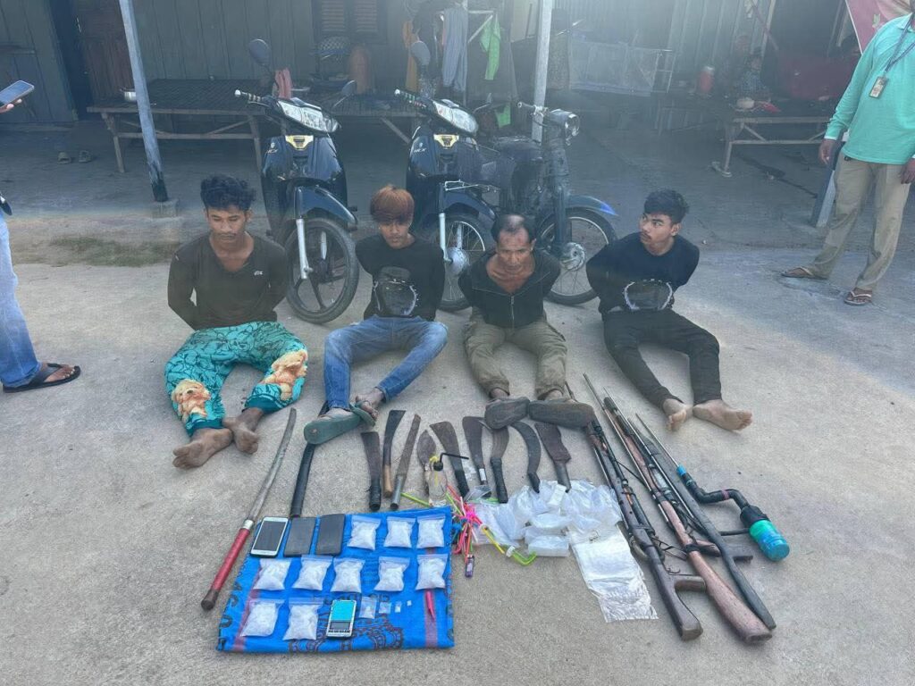 ផ្អែកតាមចម្លើយ និងបានការសម្របសម្រួលនីតិវិធីពីតំណាងអយ្យការ អមសាលាដំបូងខេត្តកំពង់ស្ពឺ សមត្ថកិច្ចដឹកនាំពីលោកវរសេនីយ៍ទោ សាវ សុភក្ដីអធិការនគរបាលស្រុកសាមគគីមុនីជ័យ បានបន្តឃាត់ខ្លួនជនសង្ស័យបានចំនួន ៤ នាក់បន្ថែមទៀត ៖ ១. ឈ្មោះ ងាន ធូ ភេភេទប្រុស អាយុ៣៦ឆ្នាំ ២.ឈ្មោះ ជិន សុផល ភេទប្រុស អាយុ២៣ឆ្នាំ ៣.ឈ្មោះ ជិន ផុន ភេទប្រុស អាយុ២០ឆ្នាំ អ្នកទាំងបីររស់នៅភូមិពងទឹក ឃុំដំណាក់រាំង ស្រុកសាមគ្គីមុនីជ័យ ៤.ឈ្មោះផាត រតនា ភេទប្រុស អាយុ១៦ឆ្នាំរស់នៅភូមិទួលសំបូរ ឃុំដំណាក់រាំង ស្រុកសាមគ្គីមុនីជ័យ និងបានឆែកឆេររកឃេីញសម្ភារៈមួយចំនួន – ម្សៅក្រាមពណ៌សសង្ស័យជាគ្រឿងញៀនចំនួន ១៤ កញ្ចប់ – ទូរស័ព្ទដៃចំនួន ៣ គ្រឿង – ជញ្ចឹងអេឡិចត្រូនិច ១ គ្រឿង- បារីអេឡិចត្រូនិច (YOOZ) ១ គ្រឿង – ម៉ូតូចំនួន ៣ គ្រឿង – កាំបិតចំនួន ៦ ដើម – ដាវចំនួន ២ ដើម – កាំភ្លើងកែច្នៃប្រើខ្យល់ចំនួន ០៤ ដើម – ឧបករណ៍កែច្នៃសម្រាប់ប្រើប្រាស់គ្រឿងញៀនមួយចំនួន។