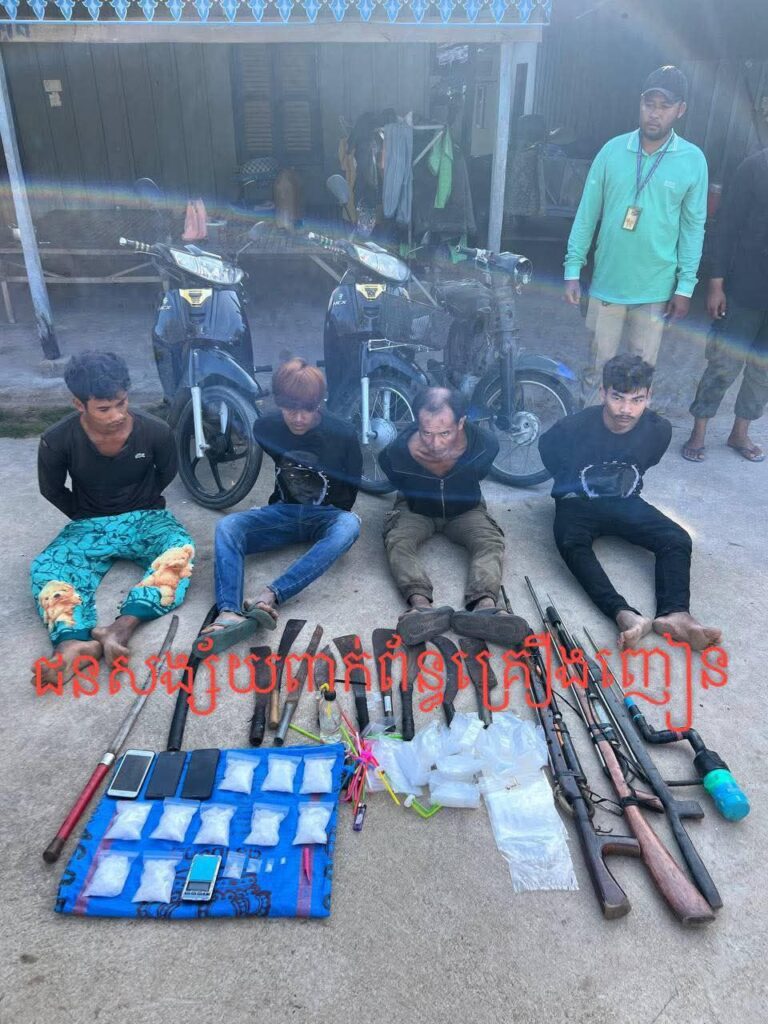 ខេត្ដកំពង់ស្ពឺ ៖ ដោយអនុវត្ដតាមបទបញ្ជាដឹកនាំដ៏ខ្ពង់ខ្ពស់ ពីលោកឧត្ដមសេនីយ៍ទោ ឃឹម សុកខៃ ស្នងការនគរបាលខេត្ដកំពង់ស្ពឺ ថ្ងៃអាទិត្យ ៩កើត ខែបុស្ស ឆ្នាំ ម្សាញ់សប្តស័ក ពុទ្ធសករាជ ២៥៦៩ ត្រូវនឹងថ្ងៃទី២៨ ខែធ្នូ ឆ្នាំ២០២៥ កំលាំងអធិការដ្ឋាននគរបាលស្រុកសាមគ្គីមុនីជ័យ បានល្បាតនៅចំណុចផ្លូវលំខាងជើងភូមិស្តុកស្លាត ឃុំភ្នំតូច ស្រុកសាមគ្គីមុនីជ័យ ខេត្តកំពង់ស្ពឺ បានឃើញមុខសញ្ញាសង្ស័យចំនួន២នាក់ ១. ឈ្មោះ លាប លីន ភេទប្រុស អាយុ២៤ឆ្នាំ រស់នៅភូមិទួលសំបូរ ឃុំដំណាក់រាំង ស្រុកសាមគ្គីមុនីជ័យ ២.ឈ្មោះ ឡូង វ៉ាន់ថន ភេទប្រុស អាយុ២៤ឆ្នាំ រស់នៅភូមិពងទឹក ឃុំដំណាក់រាំង ស្រុកសាមគ្គីមានជ័យ