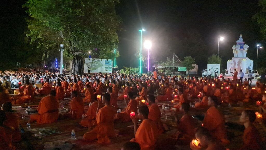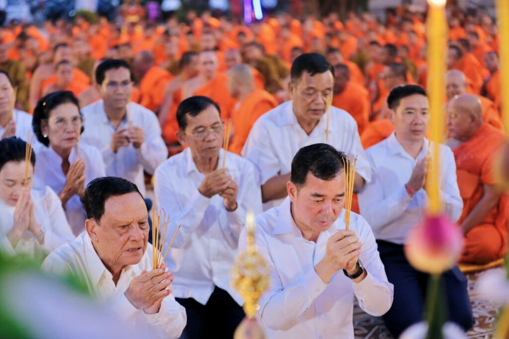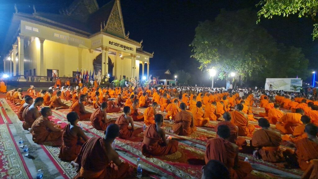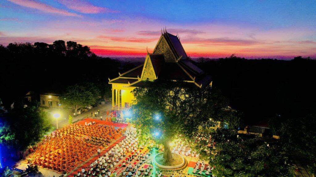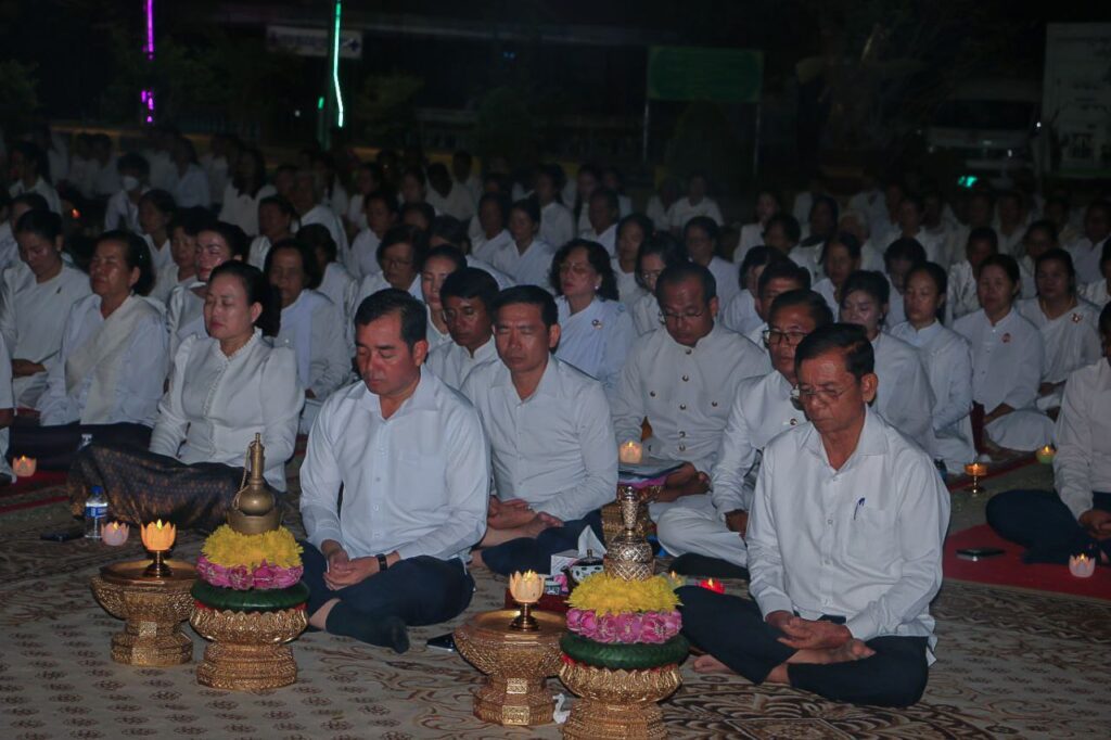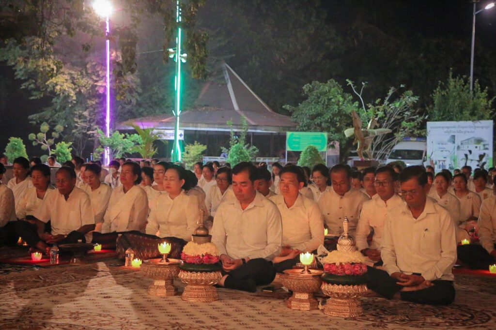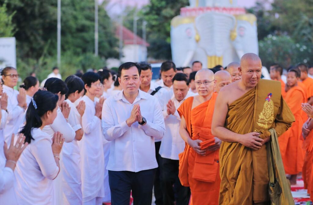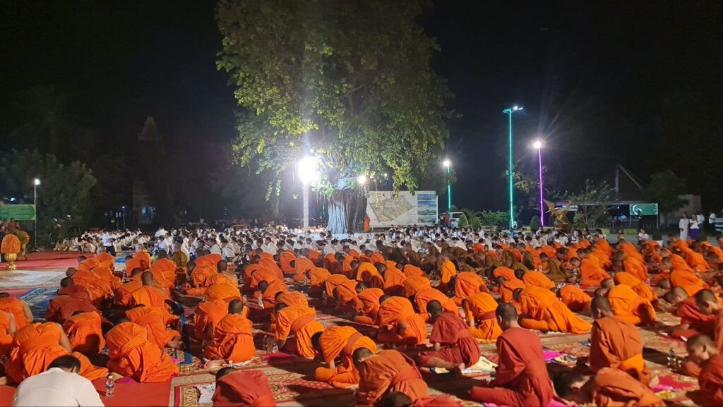 ខេត្តកំពង់ចាម: នៅក្នុងស្មារតីមហាសាមគ្គីភាពពីសំណាក់បងប្អូនពុទ្ធបរិស័ទចំណុះជើងវត្តជិតឆ្ងាយរួមទាំងព្រះសង្ឃប្រមាណជាង១០០០អង្គ/នាក់ បានជួបជុំធ្វើពិធីបួងសួងសុំសុខសន្តិភាពសម្រាប់ព្រះរាជាណាចក្រកម្ពុជាទាំងមូល ដោយធ្វើឡើងនៅក្នុងបរិវេណវត្តបឹងស្នាយ ក្នុងសង្កាត់សំបួរមាស ក្រុងកំពង់ចាម ដោយធ្វើឡើងនាម៉ោង៦ល្ងាចដល់ម៉ោង៨យប់ថ្ងៃទី២៩ធ្នូ ឆ្នាំ២០២៥។នាឱកាសនោះគេក៏បានឃើញវត្តមានឯកឧត្តមខ្លូត