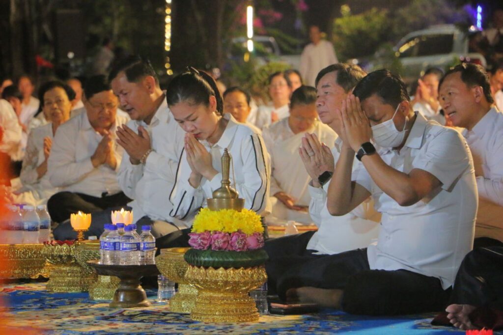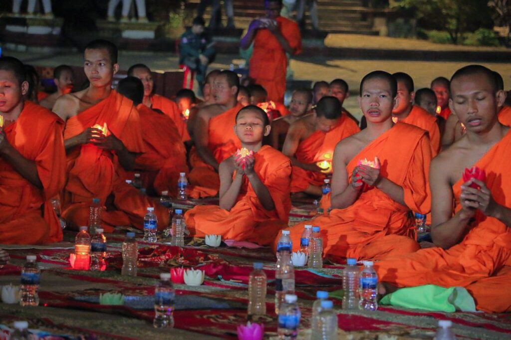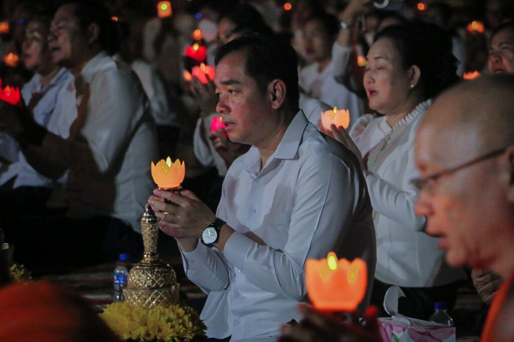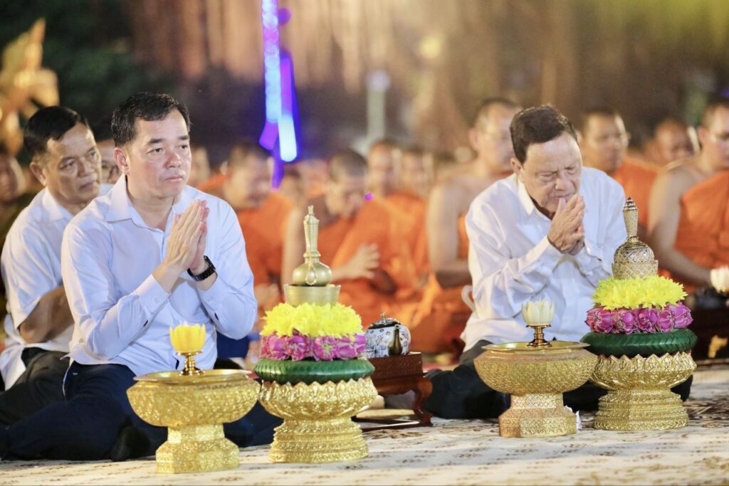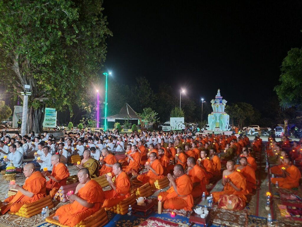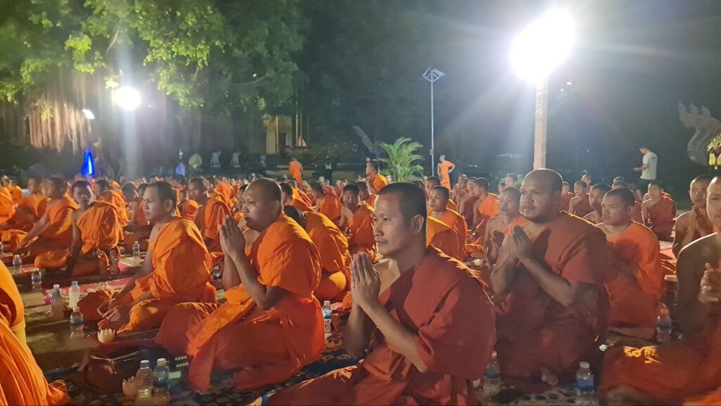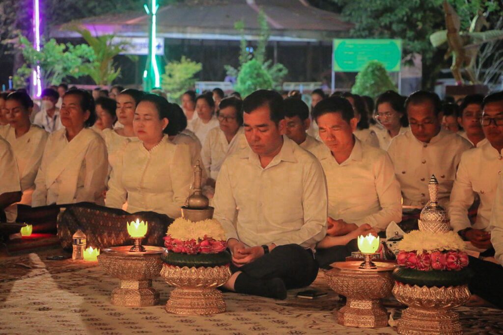 ខេត្តកំពង់ចាម: នៅក្នុងស្មារតីមហាសាមគ្គីភាពពីសំណាក់បងប្អូនពុទ្ធបរិស័ទចំណុះជើងវត្តជិតឆ្ងាយរួមទាំងព្រះសង្ឃប្រមាណជាង១០០០អង្គ/នាក់ បានជួបជុំធ្វើពិធីបួងសួងសុំសុខសន្តិភាពសម្រាប់ព្រះរាជាណាចក្រកម្ពុជាទាំងមូល ដោយធ្វើឡើងនៅក្នុងបរិវេណវត្តបឹងស្នាយ ក្នុងសង្កាត់សំបួរមាស ក្រុងកំពង់ចាម ដោយធ្វើឡើងនាម៉ោង៦ល្ងាចដល់ម៉ោង៨យប់ថ្ងៃទី២៩ធ្នូ ឆ្នាំ២០២៥។នាឱកាសនោះគេក៏បានឃើញវត្តមានឯកឧត្តមខ្លូត