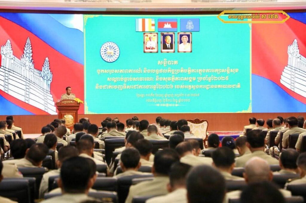 រាជធានីភ្នំពេញ ៖ ឯកឧត្តម នាយឧត្តមសេនីយ៍ ស ថេត អគ្គស្នងការនគរបាលជាតិ នៅព្រឹកថ្ងៃអង្គារ ទី៣០ ខែធ្នូ ឆ្នាំ២០២៥ នេះ បានប្រកាសថា កងកម្លាំងនគរបាលជាតិ នៅតែបន្ដប្រកៀកស្មាគ្នាយ៉ាងរឹងមាំស្អិតរមួត តស៊ូក្រាញននៀលជាមួយកងយោធពលខេមរភូមិន្ទ ដើម្បីការពារបូរណភាពទឹកដី និងអធិបតេយ្យភាពជាតិ ប្រឆាំងនឹងការឈ្លានពានរបស់បរទេស។