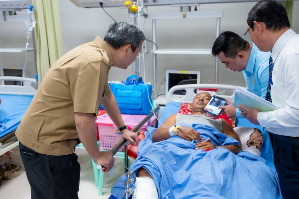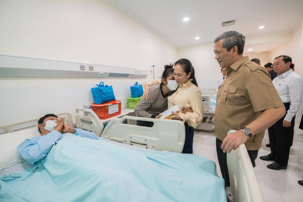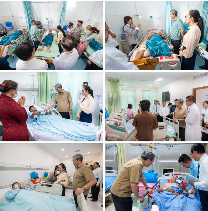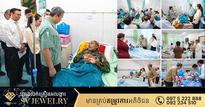 រាជធានីភ្នំពេញ ៖ ថ្ងៃអង្គារ ទី៣០ ធ្នូ ២០២៥ សម្តេចបវរធិបតី ហ៊ុន ម៉ាណែត នាយករដ្ឋមន្រ្តីនៃព្រះរាជាណាចក្រកម្ពជា រួមជាមួយនិងលោកជំទាវបណ្ឌិត បានអញ្ជើញជួបសួរសុខទុក្ខបងប្អូន វីរកងទ័ព និងវីរនគរបាលដែលរងរបួសក្នុងសមរភូមិ និងបានបញ្ជូនមកសម្រាកព្យាបាលបន្តនៅតាមមន្ទីរពេទ្យក្នុងរាជធានីភ្នំពេញ។