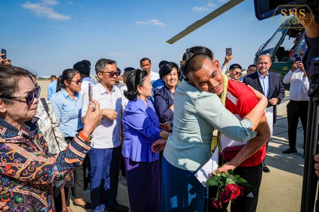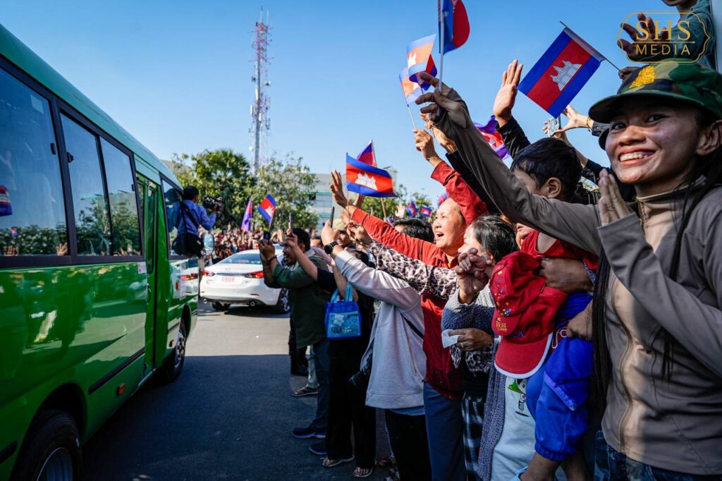 វីរៈកងទ័ពយើងទាំង១៨រូប ត្រូវបានទទួលការស្វាគមន៍យ៉ាងកក់ក្តៅពីថ្នាក់ដឹកនាំសំខាន់ៗនៃរាជរដ្ឋាភិបាលកម្ពុជា និងបងប្អូនប្រជាពលរដ្ឋជាច្រើន។ នៅរសៀលនេះផងដែរ វីរៈកងទ័ពយើងទាំង១៨រូប ក៏បានអនុញ្ញាតពីសម្ដេចមហាបវរធិបតី ហ៊ុន ម៉ាណែត នាយករដ្ឋមន្ត្រីនៃព្រះរាជាណាចក្រកម្ពុជា ចូលជួបសំណេះសំណាល នៅវិមានសន្តិភាពផងដែរ៕រក្សាសិទ្ធដោយ៖សុទ្ធលី