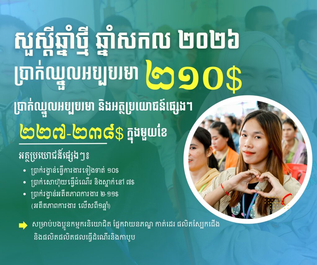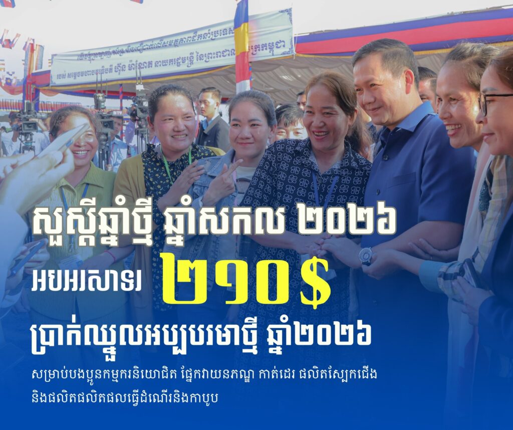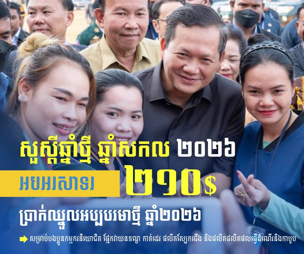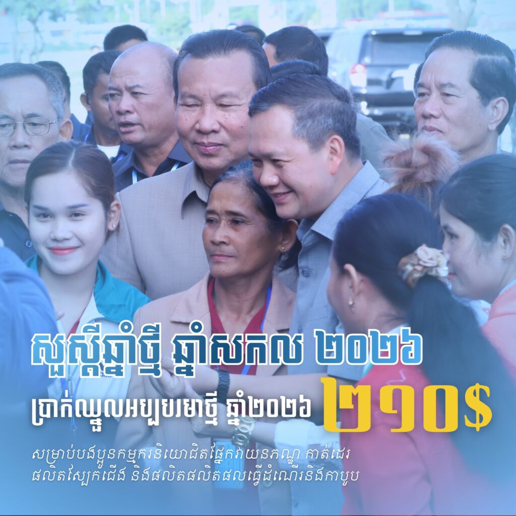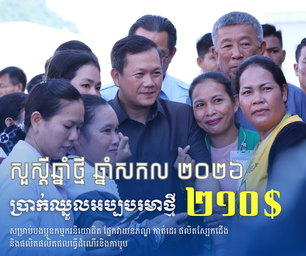ក្នុងស្មារតីនេះ ក្រុមប្រឹក្សាជាតិប្រាក់ឈ្នួលអប្បបរមាបានស្នើតួលេខចំនួន ២០៨ (ពីររយប្រាំបី) ដុល្លារអាម៉េរិក ជូន សម្ដេចមហាបវរធិបតី ហ៊ុន ម៉ាណែត នាយករដ្ឋមន្ត្រីនៃព្រះរាជាណាចក្រកម្ពុជា ពិនិត្យនិងសម្រេច។ យោងលើរបាយការណ៍ និងការពិភាក្សាបន្ថែមជាមួយភាគីពាក់ព័ន្ធ សម្តេចធិបតីនាយករដ្ឋមន្ត្រី បានសម្រេចបន្ថែម ២ដុល្លារអាម៉េរិក លើតួលេខ ២០៨ ដុល្លារអាម៉េរិក របស់ក្រុមប្រឹក្សាជាតិប្រាក់ឈ្នួលអប្បបរមា ដែលធ្វើឱ្យប្រាក់ឈ្នួលអប្បបរមារបស់កម្មករនិយោជិតផ្នែក វាយនភណ្ឌ កាត់ដេរ ផលិតស្បែកជើង និងផលិតផលិតផលធ្វើដំណើរនិងកាបូប សម្រាប់ឆ្នាំ២០២៦ មានចំនួន ២១០ (ពីររយដប់) ដុល្លារអាម៉េរិក ក្នុងមួយខែ ហើយនឹងត្រូវអនុវត្តចាប់ពីថ្ងៃទី១ ខែមករា ឆ្នាំ២០២៦ តទៅ។ បើបូកទាំងអត្ថប្រយោជន៍ផ្សេងទៀត បងប្អូនកម្មករនិយោជិតនឹងទទួលបានប្រាក់ឈ្នួលយ៉ាងតិចចន្លោះពី ២២៧ ដុល្លារអាម៉េរិក ដល់ ២៣៨ដុល្លារអាម៉េរិក ក្នុងមួយខែ។