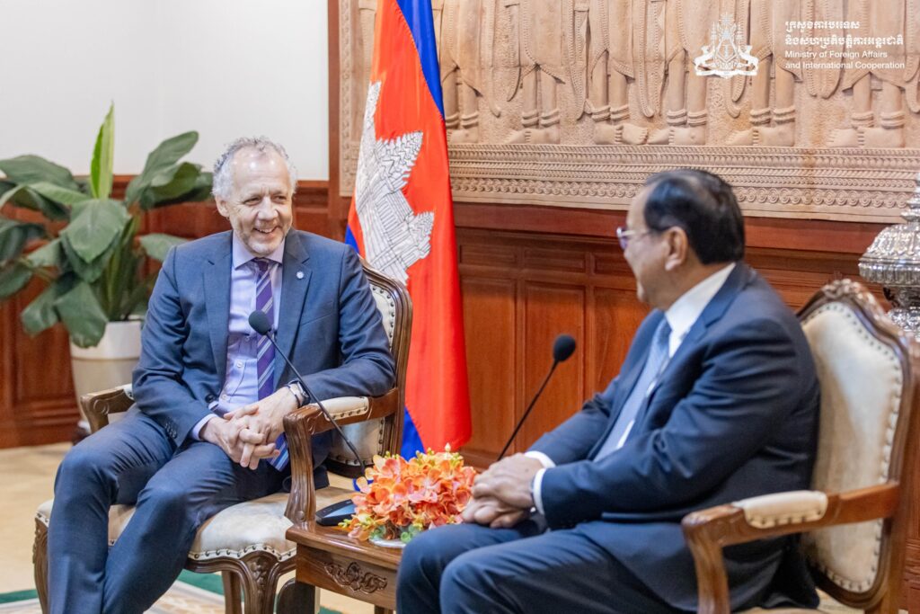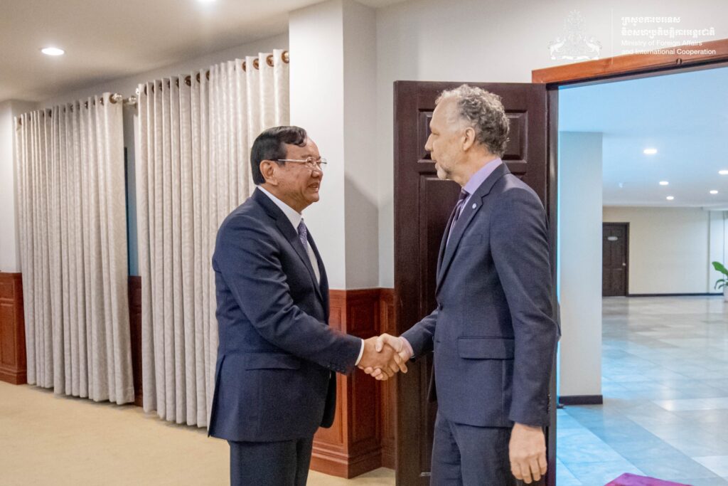 ភ្នំពេញ ៖ នៅព្រឹកថ្ងៃទី៥ ខែមករា ឆ្នាំ២០២៦ ឯកឧត្តម ប្រាក់ សុខុន ឧបនាយករដ្ឋមន្ត្រី រដ្ឋមន្ត្រីការបរទេស និងសហប្រតិបត្តិការអន្តរជាតិ បានអនុញ្ញាតឱ្យឯកឧត្តម ចូ សូយ័រ អ្នកសម្របសម្រួលប្រព័ន្ធអង្គការសហប្រជាជាតិ (អ.ស.ប.) ប្រចាំកម្ពុជា ចូលជួបសម្តែងការគួរសម និងជម្រាបលា ក្នុងឱកាសដែលឯកឧត្តមបញ្ចប់អាណត្តិបេសកកម្មនៅកម្ពុជា។