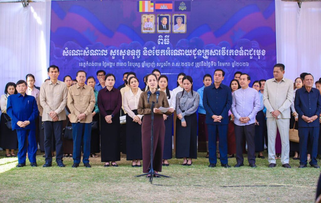 ខេត្តកំពង់ចាម: ក្រោមការយកចិត្តទុកដាក់ពីប្រមុខថ្នាក់ដឹកនាំនៃរាជរដ្ឋាភិបាលកម្ពុជា។ នាព្រឹកថ្ងៃទី៦ ខែមករា ឆ្នាំ២០២៦ លោកជំទាវបណ្ឌិត ពេជ ចន្ទមុន្នី ហ៊ុន ម៉ាណែត បានអញ្ជើញជាអធិបតីក្នុងពិធីសំណេះសំណាល សួរសុខទុក្ខ និងចែកអំណោយជូនគ្រួសារវីរកងទ័ពជួរមុខ នៅវាលស្មៅបរិវេណមុខសាលាខេត្តកំពង់ចាម។នាឱកាសនោះអញ្ជើញចូលរួមមានវត្តមានឯកឧត្តមអ៊ុន ចាន់ដា អភិបាលខេត្តរដ្ឋមន្ត្រីក្រសួងទេសចរណ៍ ទេសរដ្ឋមន្ត្រីណេតសាវឿនប្រធានក្រុមការងាររាជរដ្ឋាភិបាលចុះជួយខេត្តកំពង់ចាម។ជាមួយនោះក៏មានការអញ្ជើញចូលរួមពីថ្នាក់ដឹកនាំជាច្រើនរូបទៀត។