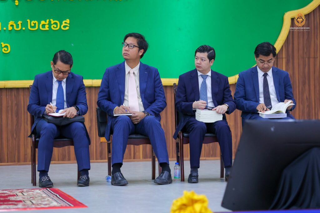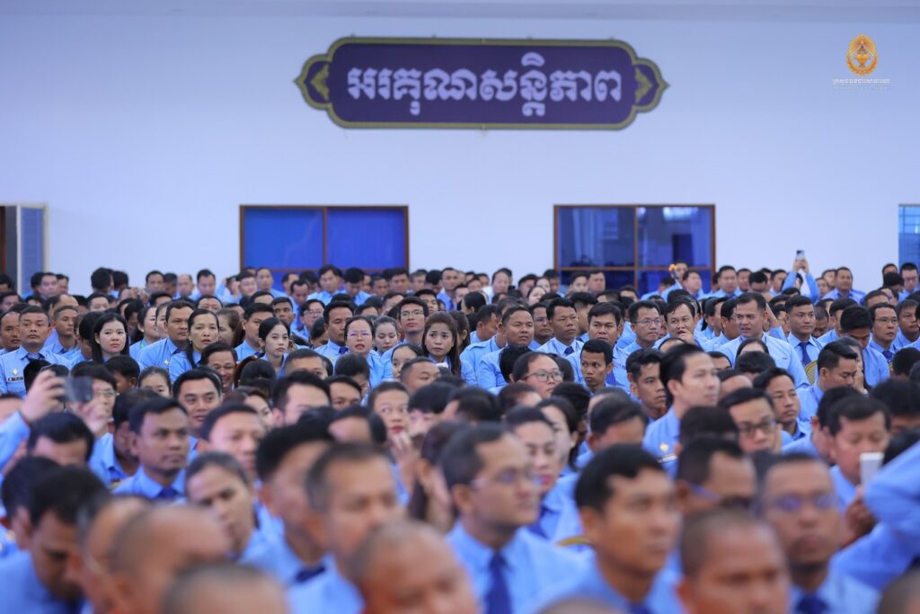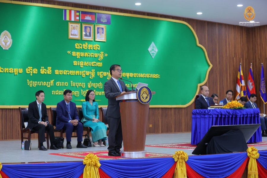 ភ្នំពេញ ៖ នាព្រឹកថ្ងៃទី៨ ខែមករា ឆ្នាំ២០២៦ ឯកឧត្តម ហ៊ុន ម៉ានី ឧបនាយករដ្ឋមន្ត្រី រដ្ឋមន្ត្រីក្រសួងមុខងារសាធារណៈ និងជាប្រធានក្រុមប្រឹក្សាសាលាភូមិន្ទរដ្ឋបាល បានអញ្ជើញផ្តល់បាឋកថាស្តីពី «ឧត្តមភាពមន្ត្រី» ជូនដល់គណៈគ្រប់គ្រង មន្ត្រីរាជការ សិស្សមន្រ្តីជាន់ខ្ពស់ ជំនាន់ទី១៣ និងសិស្សមន្រ្តីក្រមការ ជំនាន់ទី១១ កម្មសិក្សាការីមន្ត្រីជាន់ខ្ពស់ និងមន្ត្រីមធ្យម ឆ្នាំ២០២៥ នៃសាលាភូមិន្ទរដ្ឋបាល សរុបប្រមាណ ១០០០អង្គ/នាក់ នៅវិទ្យាស្ថានជាតិអប់រំ។