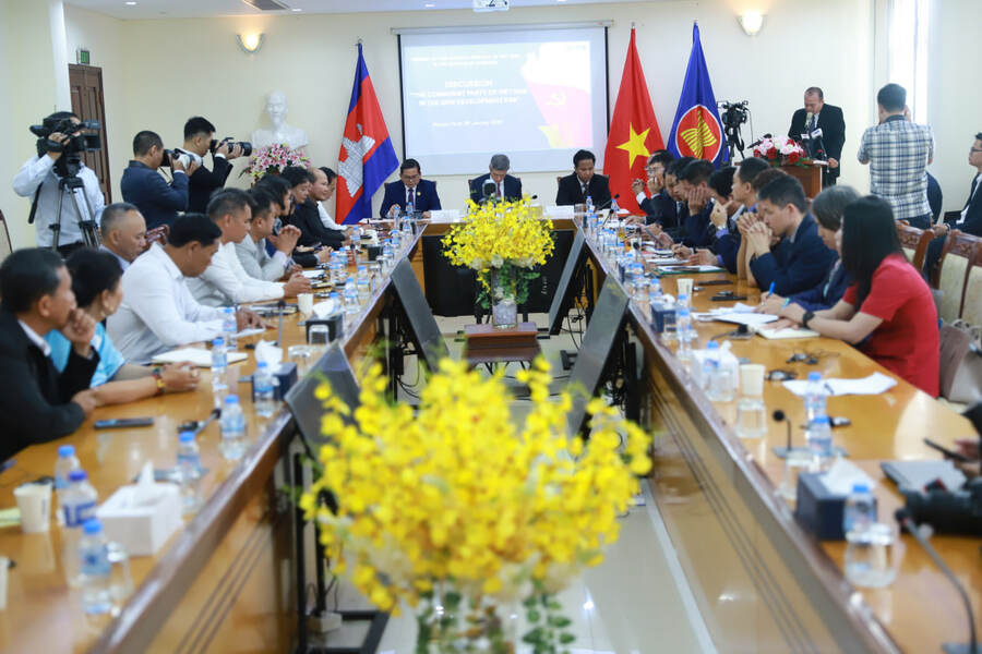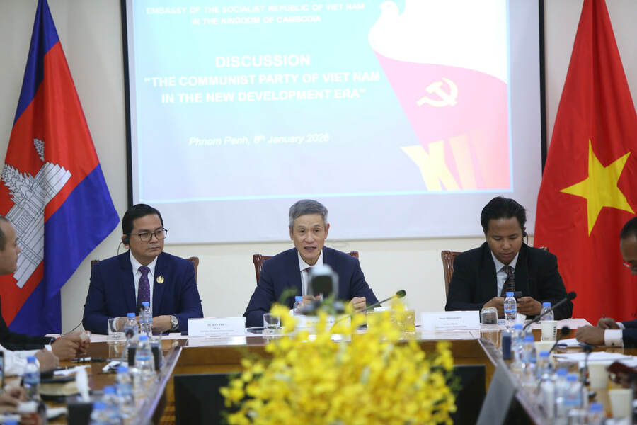 ភ្នំពេញ៖ ឯកឧត្តម ង្វៀន មិញ វូ (NGUYEN Minh Vu) ឯកអគ្គរដ្ឋទូតវៀតណាមប្រចាំនៅកម្ពុជា អញ្ជើញជាអធិបតី កិច្ចពិភាក្សាក្រោមប្រធានបទ៖ “បក្សកុម្មុយនិស្តវៀតណាម ក្នុងយុគសម័យអភិវឌ្ឍន៍ថ្មីរបស់ប្រទេសវៀតណាម” ដើម្បីអបអរសាទរ សមាជជាតិលើកទី១៤ របស់បក្សកុម្មុយនិស្តវៀតណាម ដែលនឹងប្រព្រឹត្តទៅចាប់ពីថ្ងៃទី១៩ ដល់ថ្ងៃទី២៥ ខែមករា ឆ្នាំ២០២៦ ខាងមុខនេះ។ កិច្ចពិភាក្សានេះដែលរៀបចំដោយស្ថានទូតវៀតណាម នាព្រឹកថ្ងៃទី០៨ ខែមករា ឆ្នាំ២០២៦។