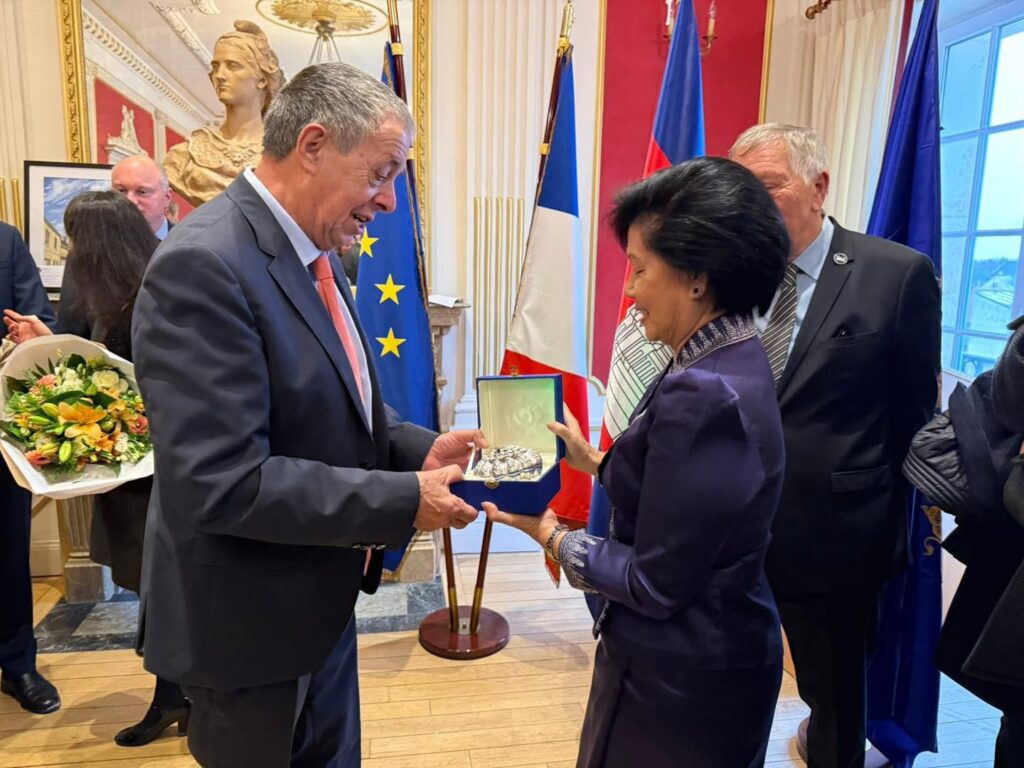 នាសាធារណរដ្ឋបារាំង វេលាថ្ងៃទី៨ ខែមករា ឆ្នាំ២០២៥ ព្រះករុណាជាអម្ចាស់ជីវិតលេីត្បូង ព្រះបាទសម្តេចព្រះបរមនាថ នរោត្តម សីហមុនី ព្រះមហាក្សត្រ នៃព្រះរាជាណាចក្រកម្ពុជា ជាទីគោរពសក្ការៈដ៏ខ្ពង់ខ្ពស់បំផុត ព្រះអង្គស្តេចសព្វព្រះរាជហឫទ័យប្រោសព្រះរាជទាន សម្តេចរាជបុត្រីព្រះអនុជ នរោត្តម អរុណរស្មី ស្តេចយាងជាព្រះរាជតំណាងដ៏ខ្ពង់ខ្ពស់បំផុត ក្នុងពិធីសម្ពោធសួនច្បារ សម្តេចព្រះ នរោត្តម សីហនុ នៅក្នុងខេត្ត Aisne ដែលទីកន្លែងនេះជាចំណុចចាប់ផ្តេីមនៃជំនួបចរចារស្វែងរកសន្តិភាពជូនជាតិមាតុភូមិកម្ពុជា នៅឆ្នាំ១៩៨៧ របស់ព្រះករុណា ព្រះបរមរតនកោដ្ឋ ជាទីគោរពសក្ការៈដ៏ខ្ពង់ខ្ពស់បំផុត ក្រោយពីសង្រ្គោមដ៏រាំរៃនៅកម្ពុជា ហេីយដែលជាបន្តបន្ទាប់អាចសម្រេចបាន កិច្ចព្រមព្រៀងសន្តិភាពទីក្រុងប៉ារីស នៅឆ្នាំ១៩៩១ ជាមូលដ្ឋានគ្រឹះដ៏សំខាន់បេីកផ្លូវដល់កម្ពុជា និងពន្លឺនៃក្តីសង្ឈឹមរបស់ប្រជារាស្រ្តខ្មែរ ឲ្យបានស្គាល់ឡេីងវិញនូវសន្តិភាព។