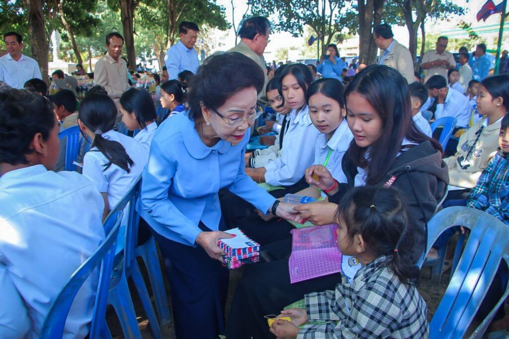 ចន្ទមុន្នី ជូនដល់ពលរដ្ឋភៀសសឹកគ្រួសារកងទ័ព ស្ត្រីមានផ្ទៃពោះនិងសិស្សានុសិស្សភៀសសឹក៦៤៧នាក់ដោយធ្វើឡើងនៅទីលានមុខសាលាស្រុកស្រីសន្ធរ នាព្រឹកថ្ងៃទី៩ ខែមករា ឆ្នាំ២០២៦ ។ ជាមួយនោះក៏មានវត្តមានឯកឧត្តមអ៊ុន ចាន់ដាអភិបាលខេត្តព្រមទាំងថ្នាក់ដឹកនាំក្នុងជួររាជរដ្ឋាភិបាលជាច្រើននាក់ផងដែរ។