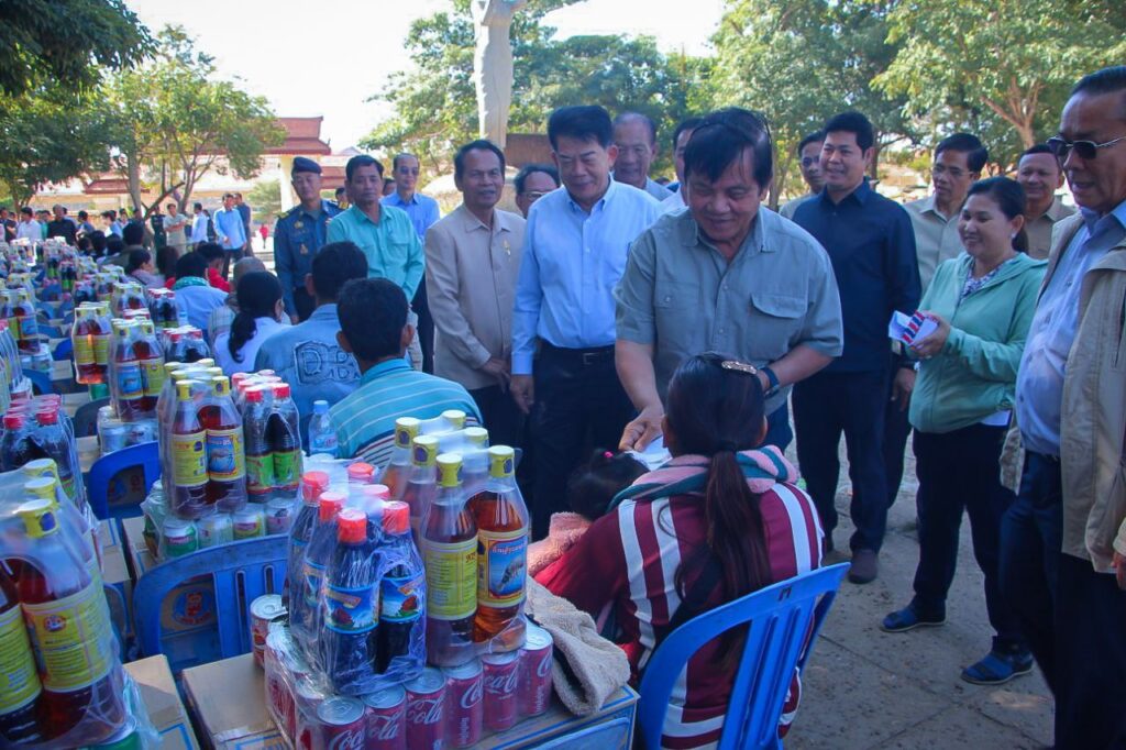 ឯកឧត្តមអនុប្រធានទី១ ព្រឹទ្ធសភាមានប្រសាសន៍លើកឡើងថា: ដោយសារតែសង្គ្រាមឈ្លានពានពីសំណាក់កងទ័ពសៀម បានធ្វើឲ្យបងប្អូនប្រជាពលរដ្ឋដែលមានខេត្តនៅជាប់តាមព្រំដែន បាននាំគ្នាចាកចោលផ្ទះសម្បែង មករកកន្លែងសុវត្ថិភាពនៅក្នុងស្រុកស្រីសន្ធរ ដែលមានចំនួនរហូតដល់៧០០គ្រួសារឯណោះ។ ជាមួយនោះអាជ្ញាធរមូលដ្ឋានក៏ដូចជារដ្ឋបាលខេត្តបានយកចិត្តទុកដាក់ដោះស្រាយជូនដល់បងប្អូនជាបន្តបន្ទាប់តាមរយៈការផ្ដល់ស្បៀង ដើម្បីជួយសម្រួលដល់ជីវភាពរស់នៅប្រចាំថ្ងៃ។