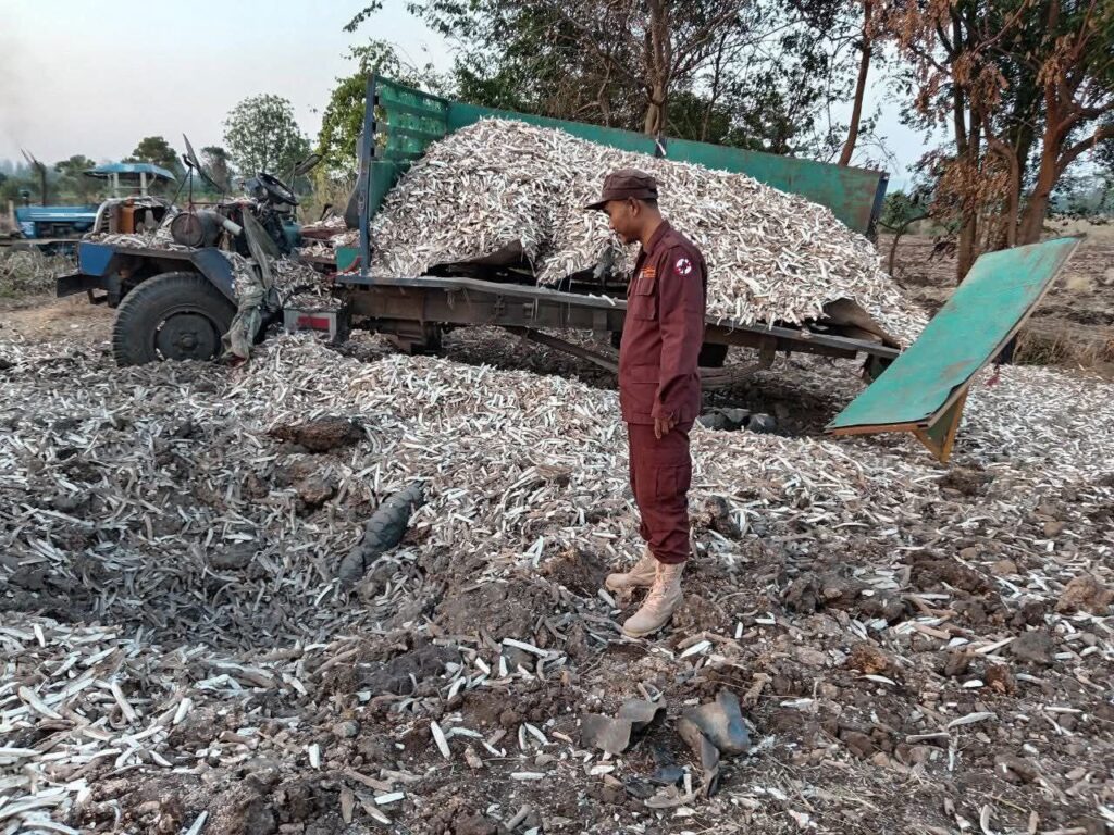 ករណីផ្ទុះគ្រាប់មីនតោនជាសំណល់សង្គ្រាមទសវត្ស១៩៨០-៩០ បានបំផ្លាញរថយន្តកែឆ្នៃដឹកដំឡូងមីមួយគ្រឿងស្ទេីទាំងស្រុង និងជាសំណាងល្អបំផុតសម្រាប់បេីកបររួចខ្លួនមិនរងរបួសស្នាមឡេីយ។