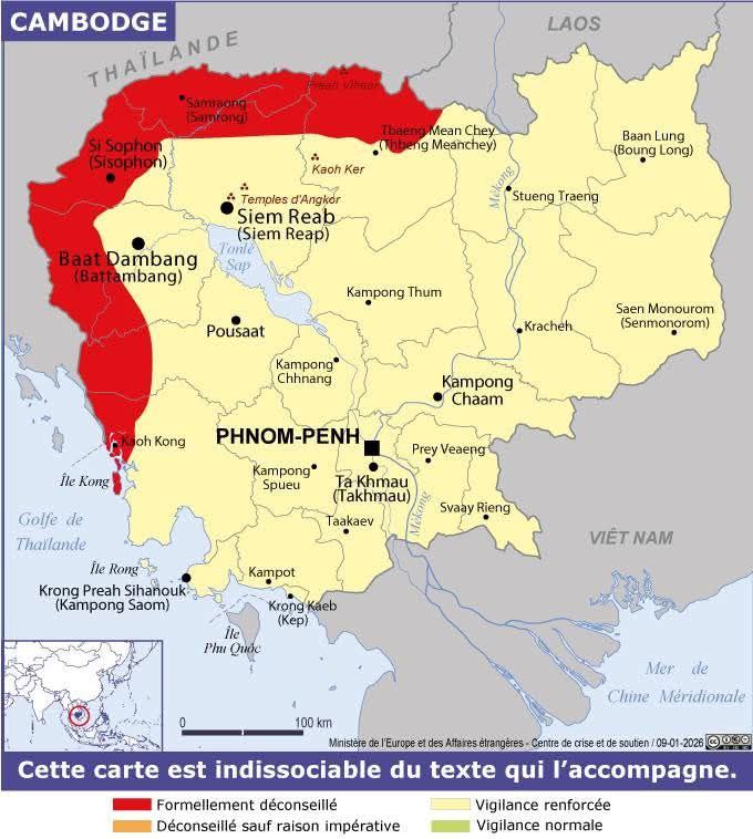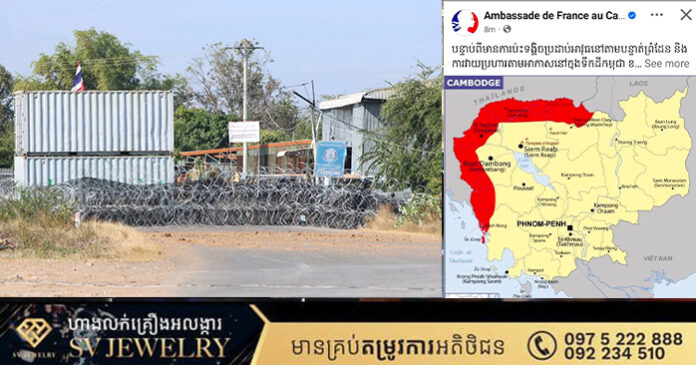 រាជធានីភ្នំពេញ ៖ ស្ថានទូតបារាំងប្រចាំកម្ពុជា នៅថ្ងៃទី១០ខែមករាឆ្នាំ២០២៦នេះ បានចេញផ្សាយព័ត៌មានឲ្យដឹងថា បន្ទាប់ពីមានការប៉ះទង្គិចប្រដាប់អាវុធនៅតាមបន្ទាត់ព្រំដែន និងការវាយប្រហារតាមអាកាសនៅក្នុងទឹកដីកម្ពុជា ខែធ្នូ កម្ពុជា និងថៃបានឈានដល់កិច្ចព្រមព្រៀងឈប់បាញ់ នៅថ្ងៃទី 27 ខែធ្នូ ឆ្នាំ 2025 ។