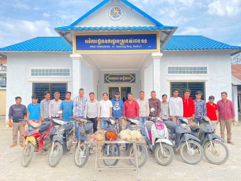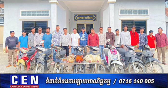 កំពង់ស្ពឺ៖ ដោយអនុវត្តតាមបញ្ជាដឹកនាំដ៏ខ្ពង់ខ្ពស់របស់លោកឧត្ដមសេនីយ៍ទោ ឃឹម សុកខៃ ស្នងការ នគរបាលខេត្ដកំពង់ស្ពឺ រសៀលថ្ងៃទី១១ ខែមករា ឆ្នាំ២០២៦ កម្លាំងអធិការដ្ឋាននគរបាលស្រុកសំរោងទង ដឹកនាំដោយលោកវរសេនីយ៍ឯក ឃុត សុផល អធិការនគរបាលស្រុក បេីកប្រតិបត្ដិការបង្រ្កាបល្បែងសុីសង ជល់មាន់ មួយកន្លែងស្ថិតនៅដីឡូត៍ទំនេរ ភូមិព្រៃគុយ ឃុំត្រពាំងគង ដោយបានឃាត់មុខសញ្ញាកំពុងតែលេងជាក់ស្ដែងបាន ១៩នាក់ ក្នុងនោះមាន ឈ្មោះភឹម ផន ភេទប្រុស អាយុ៤៩ឆ្នាំនៅភូមិតាយឹង ឃុំពើក ស្រុកអង្គស្នួល ខេត្តកណ្ដាល មានបញ្ហាសុខភាពជម្ងឺឡេីងសម្ពាធឈាមយកទៅព្យាបាលនៅមន្ទីរពេទ្យបង្អែកខេត្តកំពង់ស្ពឺ ចំណែក១៨នាក់ផ្សេងទៀតបានឃាត់បញ្ជូនមកអធិការដ្ឋាននគរបាលស្រុកសំរោងទងដេីម្បីបំពេញនីតិវិធី ។