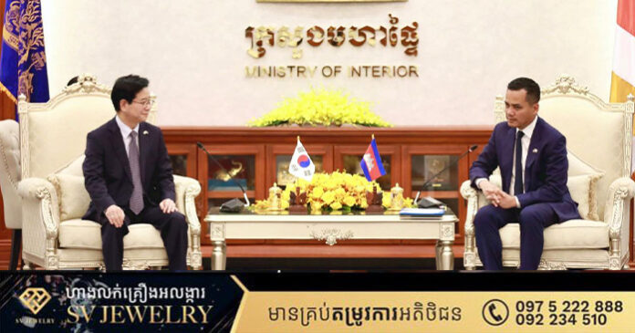 ភ្នំពេញ ៖ ភាពចាំបាច់នៃការបន្តបង្កើនកិច្ចសហប្រតិបត្តិការ ពង្រឹងចំណេះជំនាញកម្លាំងអនុវត្តច្បាប់ និងការផ្លាស់ប្តូរទស្សនកិច្ចដើម្បីដកបទពិសោធន៍លើការងារស្រាវជ្រាវ ស៊ើបអង្កេត កោសល្យវិច្ច័យទីតាំងបទល្មើស និងជំនាញថ្មីៗ បម្រើដល់ការងារនគរបាលជំនាញកម្ពុជា និងកូរ៉េ ត្រូវបានឯកឧត្តមអភិសន្តិបណ្ឌិត ស សុខា ឧបនាយករដ្ឋមន្ត្រី រដ្ឋមន្ត្រីក្រសួងមហាផ្ទៃ គូសបញ្ជាក់ក្នុងឱកាសទទួលជួបឯកឧត្តម KIM Chang Yong ឯកអគ្គរដ្ឋទូតកូរ៉េប្រចាំកម្ពុជា នៅទីស្ដីការក្រសួងមហាផ្ទៃ ថ្ងៃទី១៣ ខែមករា ឆ្នាំ២០២៦នេះ។