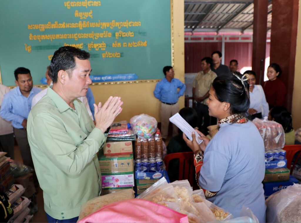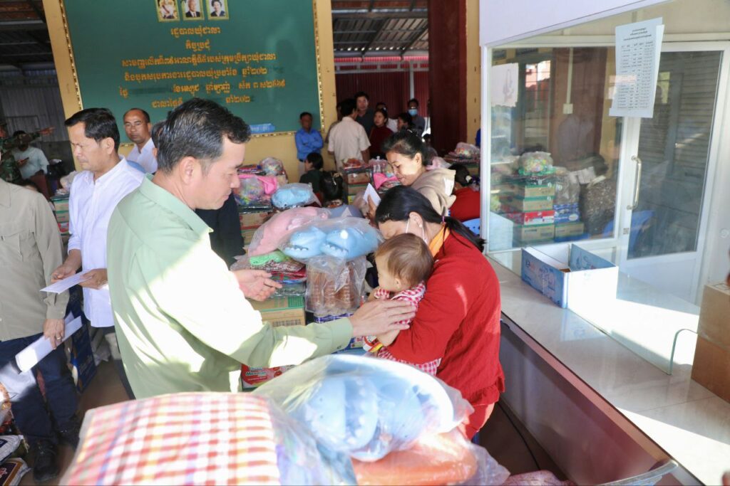 សូមបញ្ជាក់ថាអំណោយដែលបានផ្ដល់ជូននាពេលនោះ ក្នុងមួយគ្រួសារទទួលបាន: -អង្ករ ១០០គីឡូ មីខ្លាឃ្មុំក្រហម ២កេស, ទឹកសុទ្ធ ៥កេស, ទឹកស៊ីអ៉ីវ ២យួរ, ទឹកត្រី ២យួរ, បាកាស ១កេស, ប៉ូការីស្វេត ១កេស, អំបុក ៥ថង់, ខោអាវចម្រុះ ៥ថង់, បាយក្តាំង ៥កញ្ចប់, ប្រេងឆា ៥លីត្រ, ខ្ទឹមស៥គីឡូ, អំបិល១គីឡូ, ប៊ីចេង១គីឡូ, សៀង១យួរ, ម្សៅស៊ុប០,៥គីឡូ, អង្រឹង ០២, ស្បែកជើង ០៣គូរ, សារ៉ុង ០២