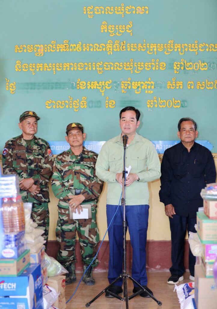 ឯកឧត្តម អ៊ុន ចាន់ដា អភិបាលខេត្ត បានពាំនាំនូវប្រសាសន៍ផ្ដាំផ្ញើសួរសុខទុក្ខ ពីសម្តេច មហាបវរធិបតី ហ៊ុន ម៉ាណែត នាយករដ្ឋមន្ត្រីនៃព្រះរាជាណាចក្រកម្ពុជា និងលោកជំទាវបណ្ឌិត ពេជ ចន្ទមុន្នី ហ៊ុន ម៉ាណែត ជូនចំពោះបងៗ វរកងទ័ព និងក្រុមគ្រួសារ ប្រកបដោយក្តីមនោសញ្ចេតនាដ៏ជ្រាលជ្រៅ និងការដឹងគុណនូវវីរភាពដ៏អង់អាចក្លាហានរបស់វីកងទ័ពយើង ហើយជានិច្ចកាលប្រមុខថ្នាក់ដឹកនាំ លោកតែងយកចិត្តទុកដាក់គិតគូរអំពីសុខទុក្ខ និងជីវភាពរស់នៅ និងបានជួយអន្តរាគមន៍ជួយដោះស្រាយសម្រាលនូវទុក្ខលំបាក របស់វីរកងទ័ព និងក្រុមគ្រួសារ បានទាន់ពេលវេលា ដោយមិនរើសអើង ឬនិន្នាការនយោបាយអ្វីឡើយ។