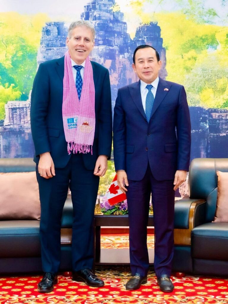 ក្នុងឱកាសនៃជំនួបពិភាក្សាប្រកបដោយផ្លែផ្កានេះ ឯកឧត្តមឯកអគ្គរដ្ឋទូត បានកោតសរសើរ និងវាយតម្លៃខ្ពស់ ចំពោះការរីកចម្រើនលើគ្រប់វិស័យ និងកត្តាសុខសុវត្ថិភាពដ៏ល្អប្រសើរដែលកម្ពុជាសម្រេចបាននាពេលបច្ចុប្បន្ន។ ឯកឧត្តមឯកអគ្គរដ្ឋទូត ក៏គូសបញ្ជាក់ជូនឯកឧត្តមរដ្ឋមន្រ្តីពីកិច្ចសហប្រតិ្តការដ៏ល្អលើគ្រប់វិស័យជាមួយកម្ពុជាកន្លងមក និងការវិនិយោគធំៗ គួរជាទីមោទនៈរបស់វិនិយោគិនកាណាដានៅកម្ពុជា ដូចជាធនាគារវឌ្ឍនៈអាស៊ី ឬស្គាល់ជាទូទៅថា ABA ដែលបានសម្រេចបណ្តាក់ទុនវិនិយោគ ផ្អែកលើសក្តានុពលវិនិយោគ និងទេសចរណ៍ ក៏ដូចជាថាមវន្តនៃប្រជាជនកម្ពុជា។ ទន្ទឹមនឹងនេះដែរ ឯកឧត្តមឯកអគ្គរដ្ឋទូត ក៏បានគូសបញ្ជាក់ពីជំហរគាំទ្រដល់ក្រសួងទេសចរណ៍ក្នុងការរៀបចំ “ភូមិហ្រ្វង់កូហ្វូន – Village Francophone” ដែលជាព្រឹត្តការណ៍អមដ៏សំខាន់ក្នុងកិច្ចប្រជុំកំពូលហ្រ្វង់កូហ្វូនីលើកទី២០ ឆ្នាំ២០២៦ នៅខេត្តសៀមរាប។