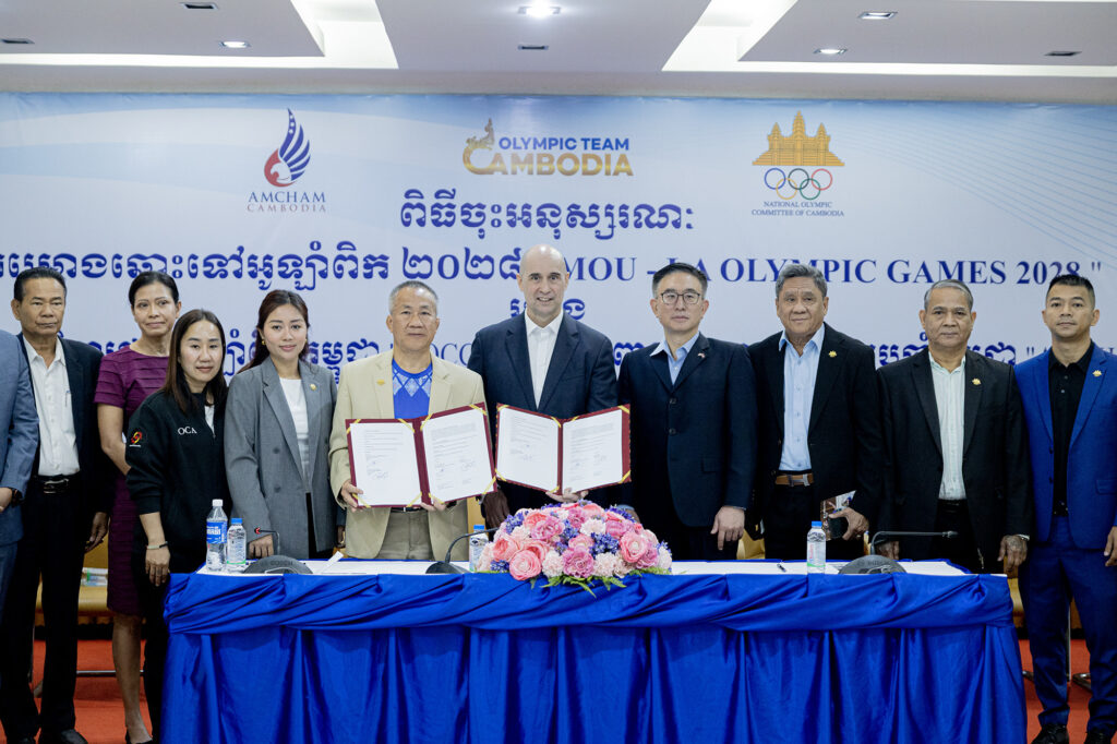 ភ្នំពេញ ៖ ស្ថានទូតសហរដ្ឋអាមេរិកប្រចាំកម្ពុជា បានចេញផ្សាយព័ត៌មានថា នៅថ្ងៃទី ១៤ ខែមករា លោកភារធារី Benjamin Chiang បានចូលរួមជាមួយសភាពាណិជ្ជកម្មកម្ពុជា សហរដ្ឋអាមេរិក នៅកម្ពុជា និងគណៈកម្មាធិការអូឡាំពិកជាតិកម្ពុជា នៅក្នុងពិធីចុះហត្ថលេខាជាផ្លូវការ លើអនុស្សរណៈនៃការយោគយល់គ្នា(MOU) ដើម្បីចាប់ផ្តើមកម្មវិធីរៃអង្គាសប្រាក់សម្រាប់ចូលរួមក្នុងការប្រកួតកីឡាអូឡាំពិកនៅទីក្រុង Los Angels ឆ្នាំ ២០២៨ ដែលជាព្រឹត្តការណ៍ធំមួយ ក្នុងការរៀបចំកីឡាករខ្មែរដើម្បីចូលរួមក្នុងព្រឹត្តិការណ៍កីឡាអូឡាំពិក និងកីឡាប៉ារ៉ាអូឡាំពិក ឆ្នាំ ២០២៨ នៅទីក្រុង Los Angeles។