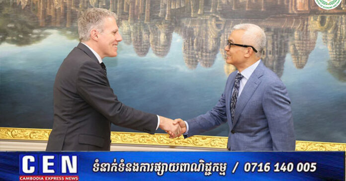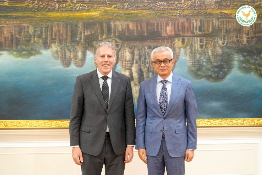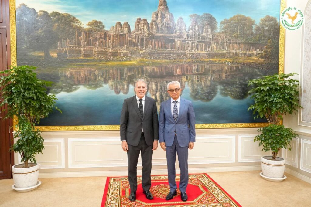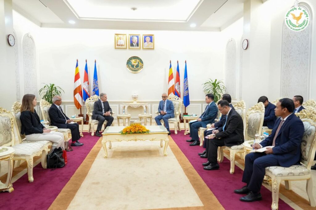 ភ្នំពេញ ៖ ឯកឧត្តមអគ្គបណ្ឌិតសភាចារ្យ អូន ព័ន្ធមុនីរ័ត្ន ឧបនាយករដ្ឋមន្រ្តី រដ្ឋមន្រ្តីក្រសួងសេដ្ឋកិច្ច និងហិរញ្ញវត្ថុ បានទទួលជួបពិភាក្សាការងារ និងសម្ដែងការគួរសមជាមួយឯកឧត្តម Christian DesRoches ឯកអគ្គរដ្ឋទូតវិសាមញ្ញ និងពេញសមត្ថភាព នៃប្រទេសកាណាដាប្រចាំកម្ពុជា, នាព្រឹកថ្ងៃទី ១៥ ខែ មករា ឆ្នាំ ២០២៦, នៅទីស្តីការក្រសួងសេដ្ឋកិច្ច និងហិរញ្ញវត្ថុ ។