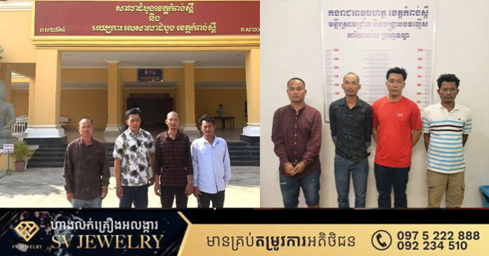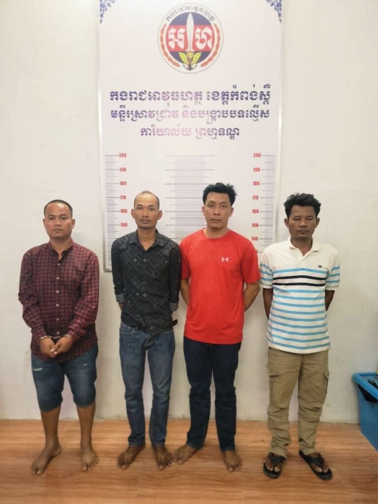 ជនសង្ស័យទាំង 4 នាក់ រួមមានឈ្មោះដូចខាងក្រោមនេះ ÷ទី1/- ឈ្មោះ ម៉ែន ថា ភេទប្រុស អាយុ 36 ឆ្នាំ មុខរបរ (កម្មកររោងចក្រ) ស្នាក់នៅ ភូមិប្រវឹងពង ឃុំទឹកល្អក់ ស្រុកគងពិសី ខេត្តកំពង់ស្ពឺ។ ទី២/- ឈ្មោះ ខេន ណារ៉ុម ភេទប្រុស អាយុ 45 ឆ្នាំ មុខរបរ (កម្មកររោងចក្រ)ស្នាក់នៅ ភូមិប្រវឹងពង ឃុំទឹកល្អក់ ស្រុកគងពិសី ខេត្តកំពង់ស្ពឺ។ ទី៣/- ឈ្មោះ មៀច សំអុល ភេទប្រុស អាយុ 44 ឆ្នាំ មុខរបរ (កម្មកររោងចក្រ) ស្នាក់នៅ ភូមិប្រវឹងពង ឃុំទឹកល្អក់ ស្រុកគងពិសី ខេត្តកំពង់ស្ពឺនិងទី4/- ឈ្មោះ សាយ ពិសិទ្ធ ភេទប្រុស អាយុ 36 ឆ្នាំ មុខរបរ (កម្មកររោងចក្រ) ស្នាក់នៅ ភូមិប្រវឹងពង ឃុំទឹកល្អក់ ស្រុកគងពិសី ខេត្តកំពង់ស្ពឺ។
