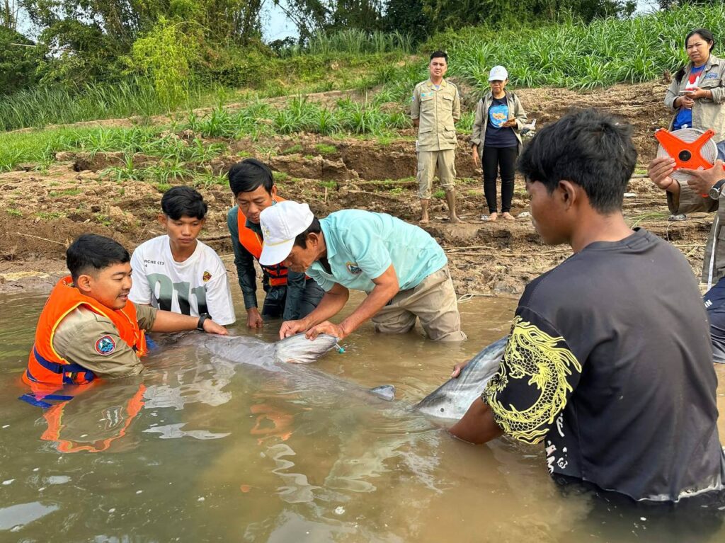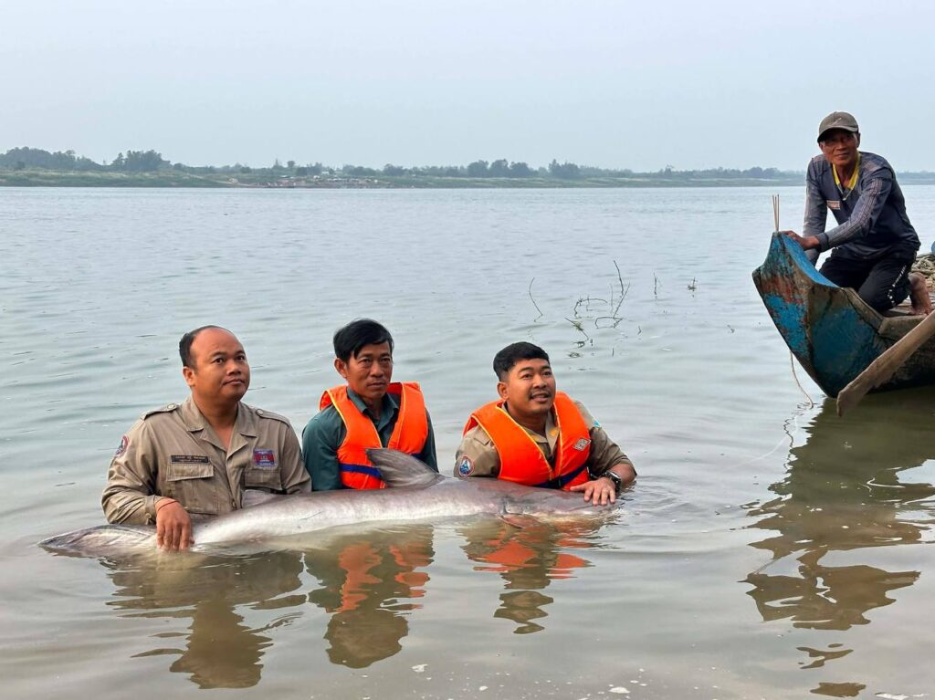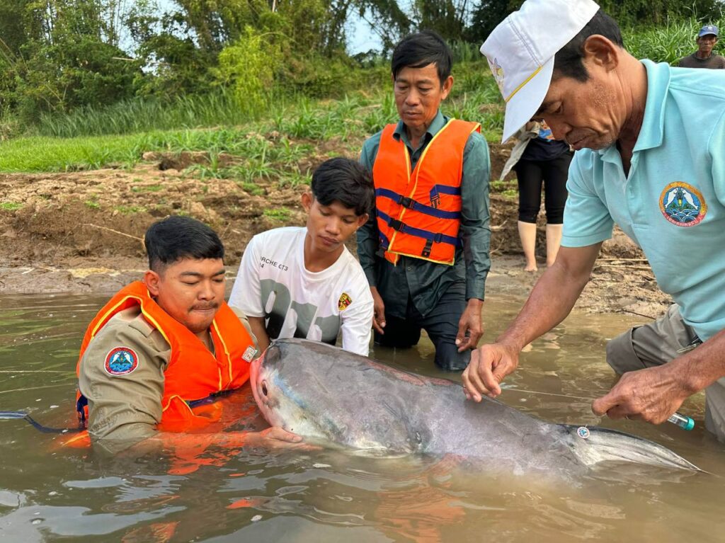 ក្រោយពីកំណត់អត្តសញ្ញាណដូចខាងលើរួច ក្រុមការងារមានអាជ្ញាធរស្រុកកងមាស មន្ត្រីនៃរដ្ឋបាលជលផល ខណ្ឌរដ្ឋបាលជលផលកំពង់ចាម និងក្រុមការងារគម្រោងអច្ឆរិយភាពនៃទន្លេមេគង្គ និងប្រជានេសាទបានលែងត្រីរាជនេះ ចូលក្នុងទន្លេមេគង្គវិញ។