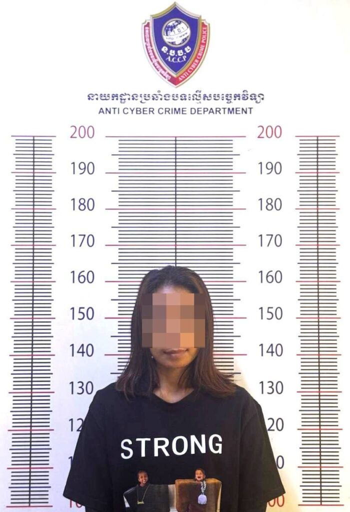 ដោយមានការសម្របសម្រួលពី ព្រះរាជអាជ្ញាអមសាលាដំបូងរាជធានីភ្នំពេញ នាយកដ្ឋានបានឃាត់ខ្លួនជនសង្ស័យ ០១នាក់ ឈ្មោះ ជ.ល.ណ ភេទស្រី ជនជាតិខ្មែរ។ តាមរយៈការស្រាវជ្រាវ សមត្ថកិច្ចកំណត់បានថា ជនសង្ស័យរូបនេះ បានយកគណនីធនាគាររបស់ខ្លួនធ្វើសកម្មភាព ឆបោកជនរងគ្រោះ ដើម្បីទទួលផលពីអំពើទុច្ចរិតខាងលើនេះ។