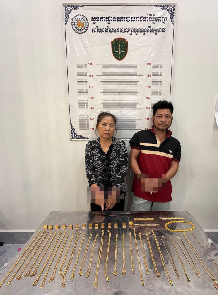 ភ្នំពេញ ៖ ដោយអនុវត្តតាមបទបញ្ជារបស់ឯកឧត្តម ឧត្តមសេនីយ៍ឯក ជួន ណារិន្ទ អគ្គស្នងការរង និងជាស្នងការនគរបាលរាជធានីភ្នំពេញ និងលោកឧត្តមសេនីយ៍ត្រី ប៊ុន សត្យា ស្នងការរង ទទួលផែនការងារនគរបាលព្រហ្មទណ្ឌ នៅថ្ងៃទី២៤ ខែមករា ឆ្នាំ២០២៥ កម្លាំងនគរបាលព្រហ្មទណ្ឌរាជធានីភ្នំពេញ និងកម្លាំងអធិការដ្ឋាននគរបាលខណ្ឌមានជ័យ នៃស្នងការដ្ឋាននគរបាលរាជធានីភ្នំពេញ សហការជាមួយកម្លាំងអធិការដ្ឋាននគរបាលក្រុងតាខ្មៅ ខេត្តកណ្ដាល បានធ្វើការស្រាវជ្រាវបង្រ្កាបករណីលួចបន្លំដូរមាសក្លែងក្លាយយកមាសពិតប្រាកដ ចំនួន០៣ករណី ឃាត់ខ្លួននៅចំណុចផ្ទះជួល ផ្លូវលំ ភូមិព្រែកសំរោង សង្កាត់តាខ្មៅ ក្រុងតាខ្មៅ ខេត្តកណ្ដាល។