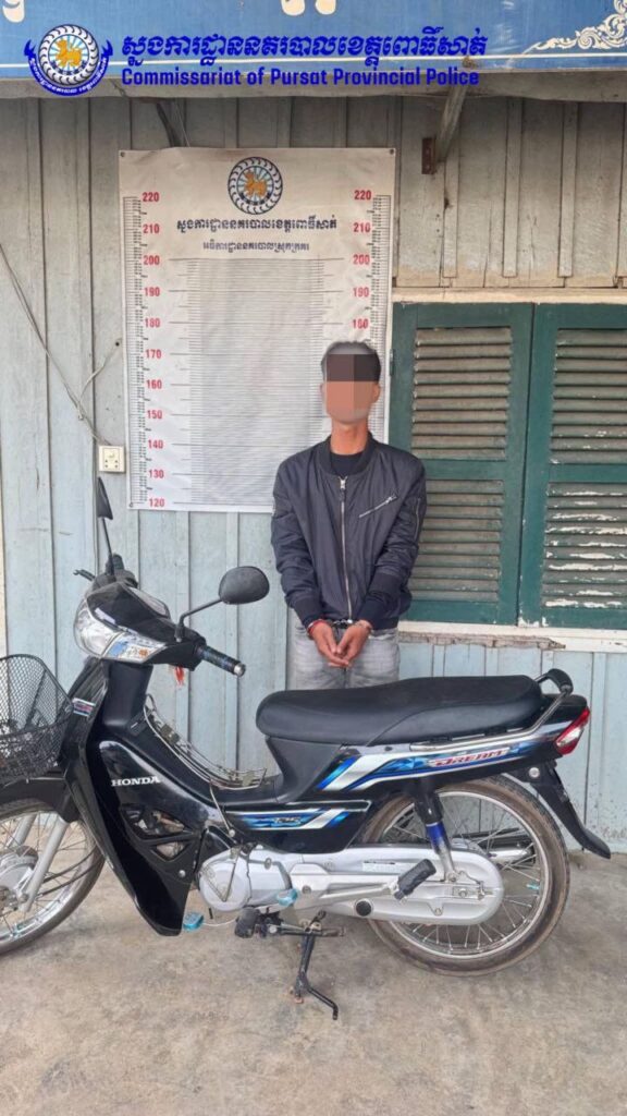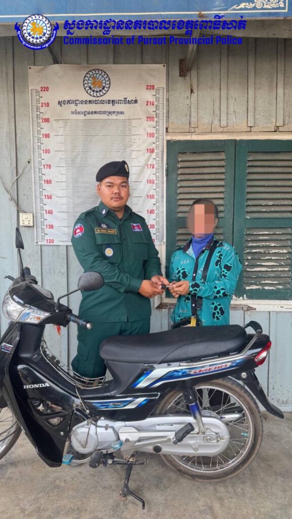 ពោធិ៍សាត់ ៖ ដោយអនុវត្តនូវបទបញ្ជាដ៏ខ្ពង់ខ្ពស់ពីឯកឧត្តម នាយឧត្តមសេនីយ៍ ស ថេត អគ្គស្នងការនគរបាលជាតិ និងលោកឧត្តមសេនីយ៍ទោ ស ថេង ស្នងការនគរបាលខេត្តពោធិ៍សាត់ កាលពីថ្ងៃទី២៥ ខែមករា ឆ្នាំ ២០២៦ វេលាម៉ោង១៥និង១០នាទី កម្លាំងផ្នែកនគរបាលយុត្តិធម៌ សហការជាមួយកម្លាំងប៉ុស្ដិ៍នគរបាលរដ្ឋបាលត្នោតជុំ បានសហការចុះបង្ក្រាបករណីលួចម៉ូតូ នៅចំណុចមុខផ្ទះរបស់ឈ្មោះ យ៉ុន សារ៉ាន់ ស្ថិតនៅភូមិក្របីស ឃុំត្នោតជុំ ស្រុកក្រគរ ខេត្តពោធិ៍សាត់។
