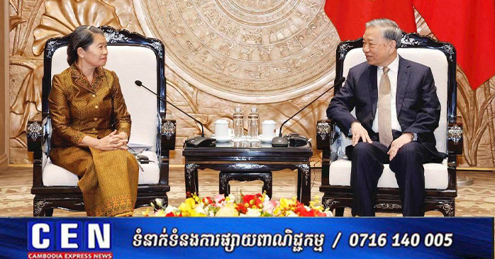 ហាណូយ ៖ ក្នុងដំណើរបំពេញបេសកកម្ម នៅសាធារណរដ្ឋសង្គមនិយមវៀតណាម សម្តេចកិត្តិសង្គហបណ្ឌិត ម៉ែន សំអន អនុប្រធានគណបក្សប្រជាជនកម្ពុជា តំណាងដ៏ខ្ពង់ខ្ពស់ សម្តេចអគ្គមហាសេនាបតីតេជោ ហ៊ុន សែន ប្រធានគណបក្សប្រជាជានកម្ពុជា បានដឹកនាំគណប្រតិភូគណបក្សប្រជាជនកម្ពុជាចូលជួបសម្តែងការគួរសម និងអបអរសាទរ ឯកឧត្តម តូ ឡឹម អគ្គលេខាធិការនៃគណៈកម្មាធិការកណ្តាលបក្សកុម្មុយនិស្តវៀតណាម នៅទីក្រុងហាណូយ នារសៀលថ្ងៃចន្ទ ៨កើត ខែមាឃ ឆ្នាំម្សាញ់ សប្តស័ក ព.ស.២៥៦៩ ត្រូវនឹងថ្ងៃទី២៦ ខែមករា ឆ្នាំ២០២៦។