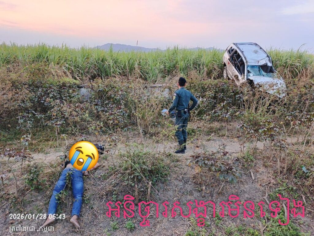 ខេត្តកំពង់ស្ពឺ ៖ នៅថ្ងៃទី២៨ ខែមករា ឆ្នំា ២០២៦ វេលាម៉ោង ០៦និង ២០នាទីព្រឹក មានករណីគ្រោះថ្នាក់ចរាចរណ៍រថយន្តបេីកបរឋិតក្នុងស្ថានភាពល្បឿនលឿនបណ្ដាលឱ្យធ្លាក់ផ្លូវក្រឡាប់ស្លាប់អ្នកបេីកបរ នៅចំណុចលើផ្លូវជាតិលេខ៤៤ចន្លោះគីឡូម៉ែត្រលេខ (៧៥- ៧៦) ស្ថិតនៅភូមិផ្លោច ឃុំត្រពាំងជោ ស្រុកឱរ៉ាល់ ខេត្តកំពង់ស្ពឺ ។