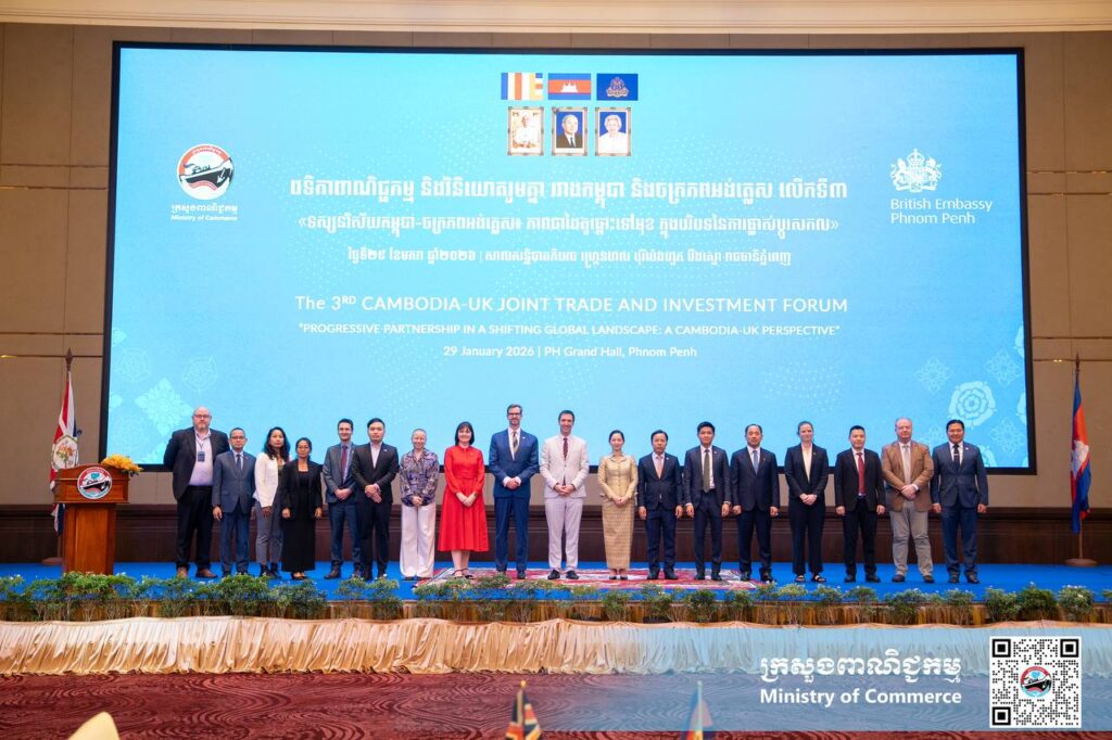 ដោយការរៀបចំវេទិកាពាណិជ្ជកម្ម និងវិនិយោគរួមគ្នាលើកទីបី ក្រោមប្រធានបទ “ភាពជាដៃគូរីកចម្រើនក្នុងទេសភាពសកលដែលកំពុងផ្លាស់ប្តូរ៖ ទស្សនវិស័យកម្ពុជា-ចក្រភពអង់គ្លេស” ប្រទេសទាំងពីរកំពុងបញ្ជាក់ជាថ្មីនូវការប្តេជ្ញាចិត្តរបស់ពួកគេក្នុងការពង្រឹងកិច្ចសហប្រតិបត្តិការសេដ្ឋកិច្ច លើកកម្ពស់កំណើនប្រកបដោយចីរភាព និងបង្កើតឱកាសថ្មីៗសម្រាប់អាជីវកម្ម។