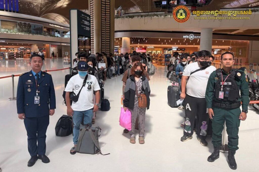 ភ្នំពេញ៖ នៅយប់ថ្ងៃទី២៣ ដល់ថ្ងៃទី២៦ ខែមករា ឆ្នាំ២០២៦ សមត្ថកិច្ច បានបណ្តេញជនជាតិមីយ៉ាន់ម៉ា សរុបចំនួន ៧២៩នាក់ (ស្រី២១៧នាក់) ចេញពីប្រទេសកម្ពុជា តាមរយៈយន្តហោះពិសេស ពាក់ព័ន្ធករណីលួចស្នាក់នៅធ្វើការងារខុសច្បាប់ និងគ្មានលិខិតឆ្លងដែន (online scam) ។ នេះបើតាមអគ្គនាយកដ្ឋានអន្តោប្រវេសន៍ ផ្សព្វផ្សាយនៅលើទំព័រហ្វេសប៊ុកផ្លូវការនារាត្រីថ្ងៃទី ២៩ ខែមករា នេះ។