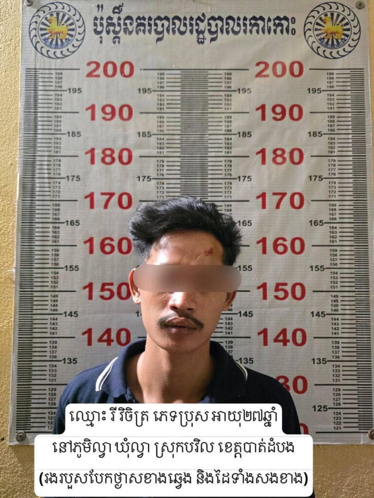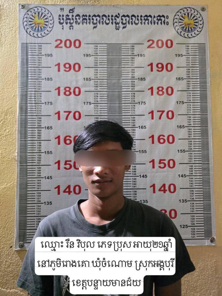 (៤)-ឈ្មោះ រិន វិបុល ភេទប្រុស អាយុ២១ឆ្នាំ នៅភូមិរោងគោ ឃុំ ចំណោម ស្រុកអង្គរបុរី ខេត្តបន្ទាយមានជ័យ ប្រេីដុំឥដ្ឋគប់