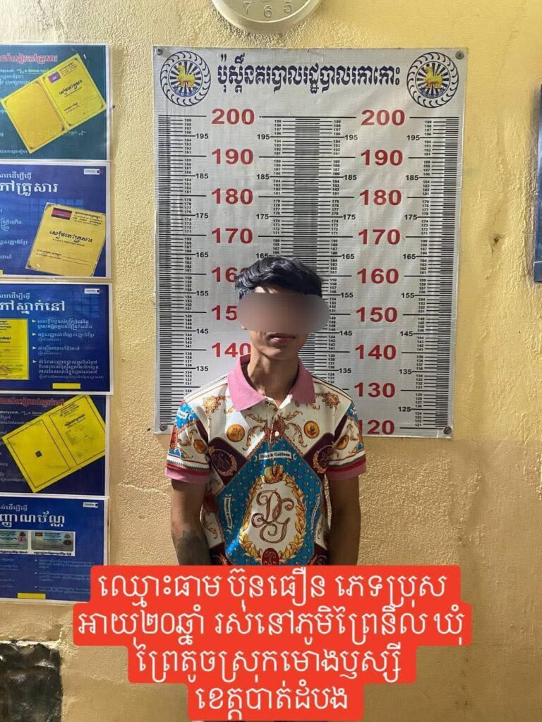(៨)-ឈ្មោះ ធាម ធាង ភេទប្រុស អាយុ២០ឆ្នាំ នៅភូមិព្រៃនឹល ឃុំព្រៃតូច ស្រុកមោងឬស្សី ខេត្តបាត់ដំបង